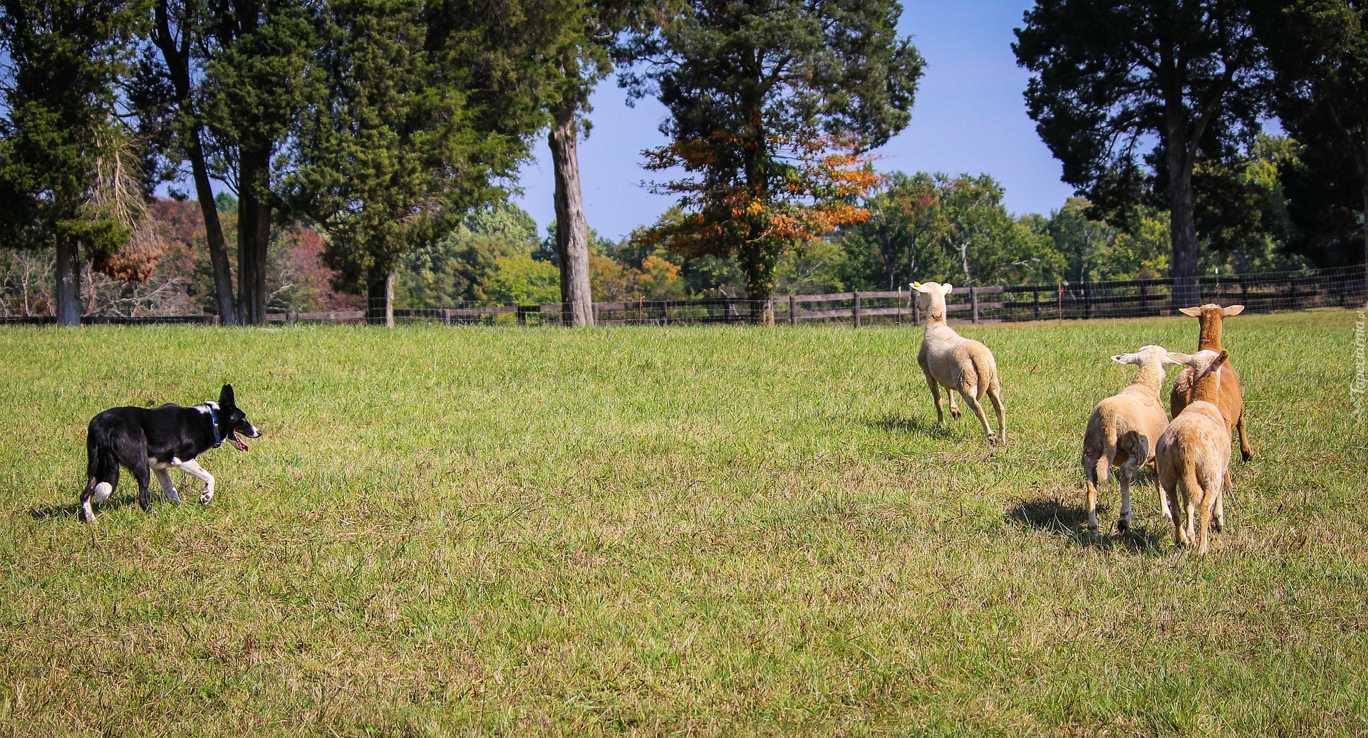 Edytor tapety: Border collie pilnuje owiec na łące