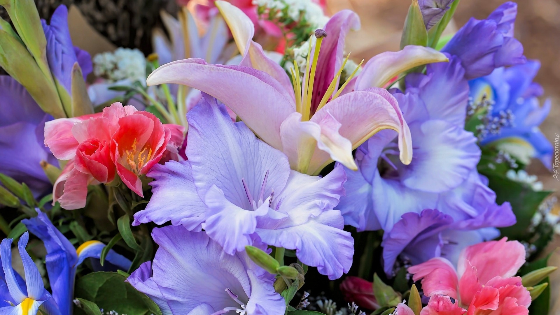 Edytor tapety: Kolorowe lilie w bukiecie
