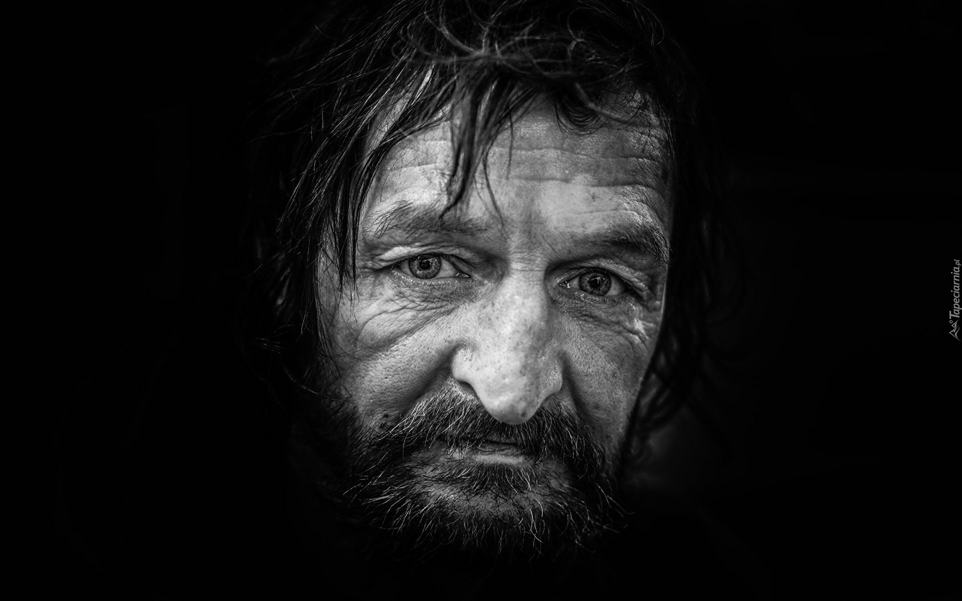 Edytor tapety: Czarno-biały portret starszego mężczyzny z brodą
