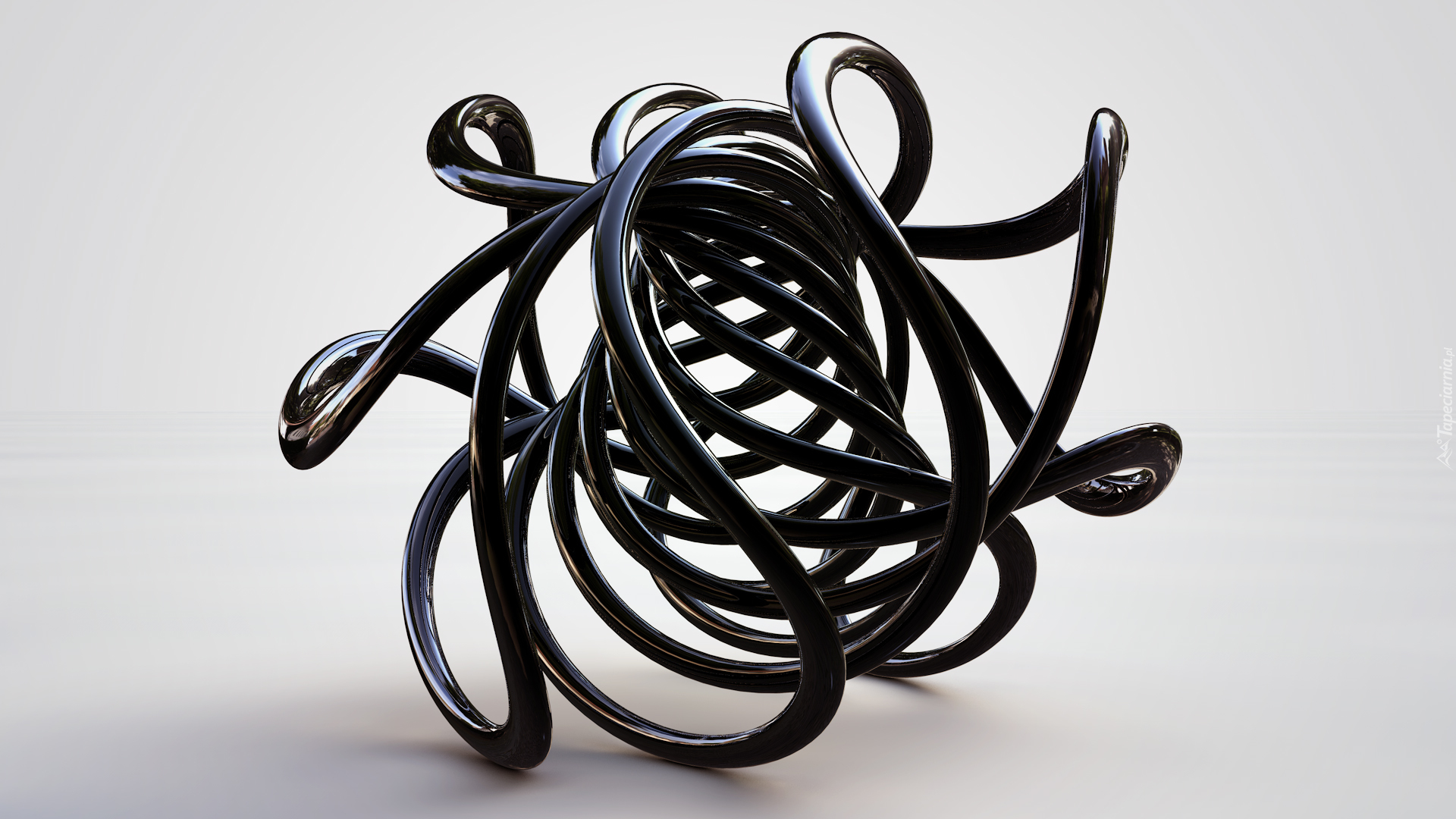 Edytor tapety: Czarny skręcony obiekt w grafice 3D