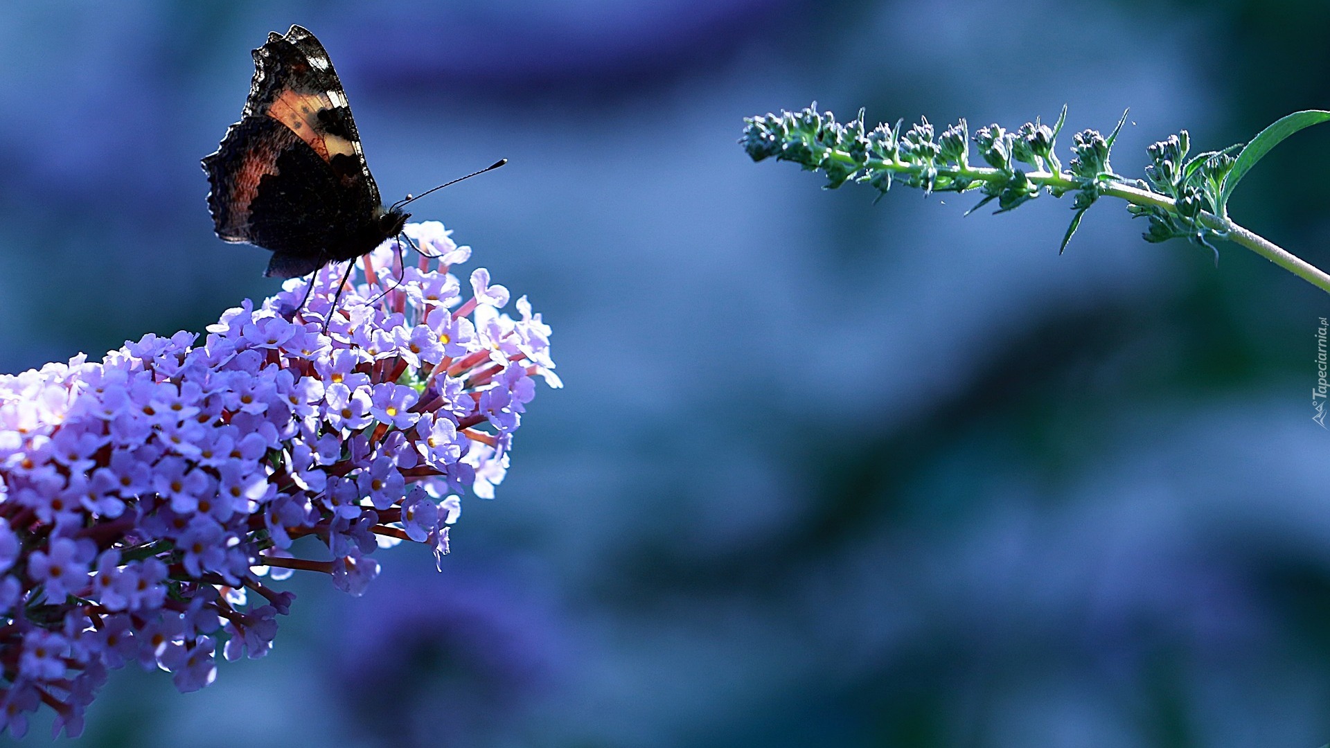 Edytor tapety: Motyl rusałka admirał na kwiatach budlei