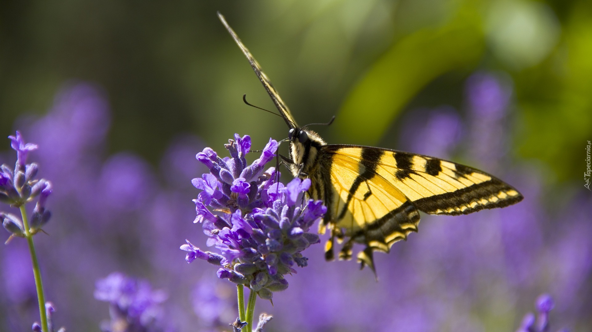 Edytor tapety: Motyl monarcha na kwiatach lawendy