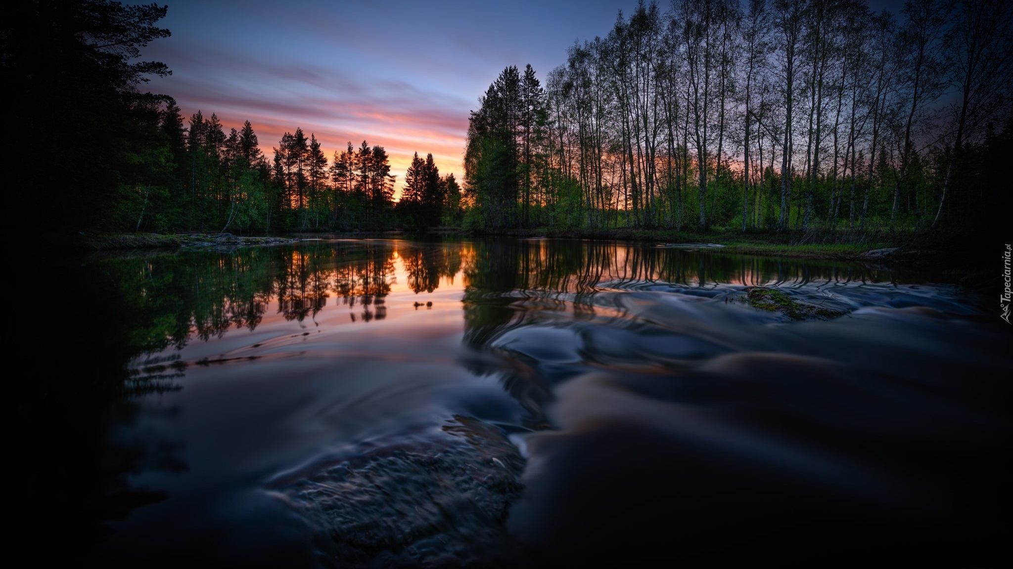 Edytor tapety: Drzewa nad jeziorem o zmierzchu
