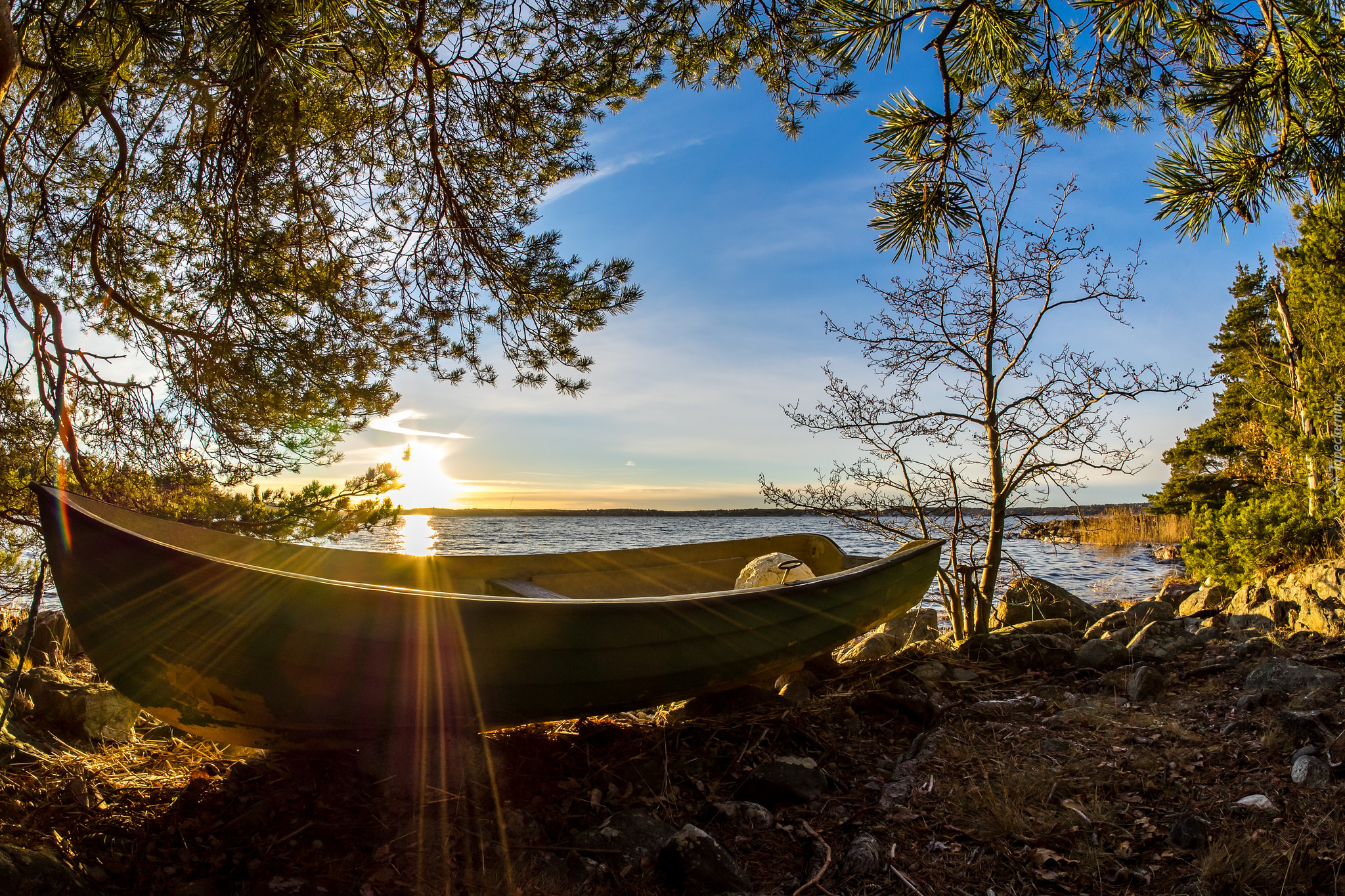 Edytor tapety: Łódka na brzegu morza w szwedzkiej gminie Värmdö