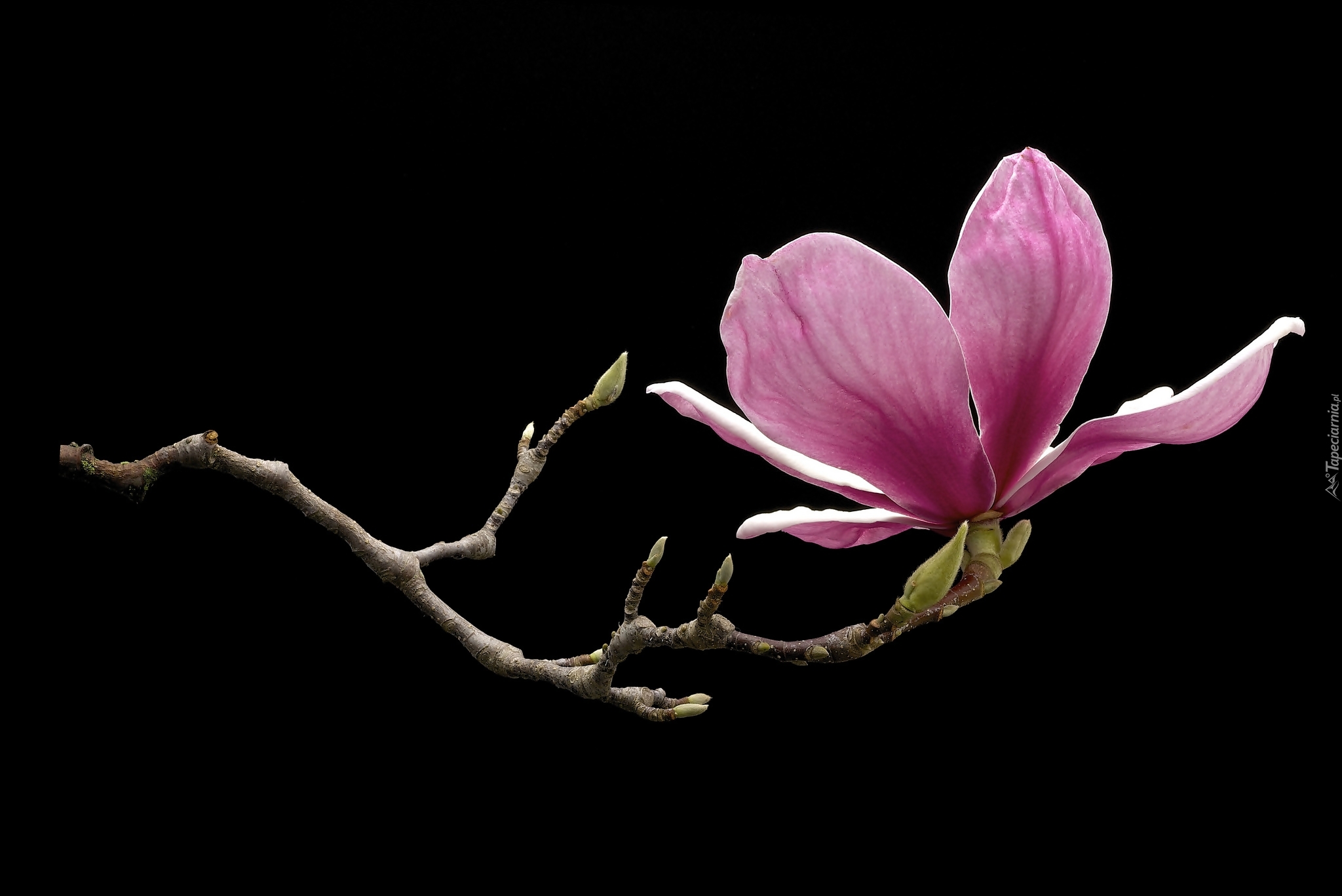 Edytor tapety: Gałązka z kwiatem magnolii na czarnym tle