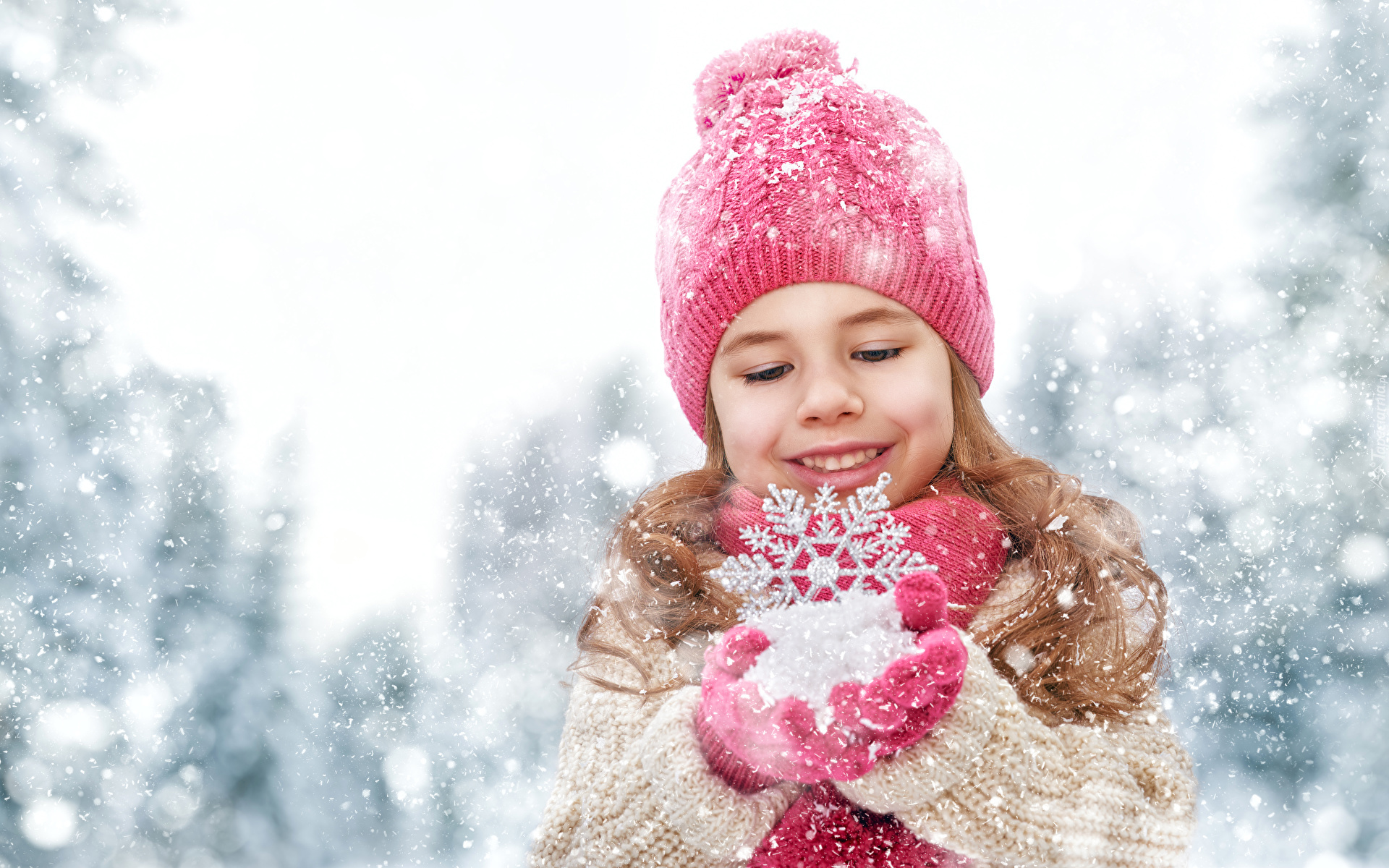 Edytor tapety: Uśmiechnięta dziewczynka z płatkiem śniegu w dłoniach