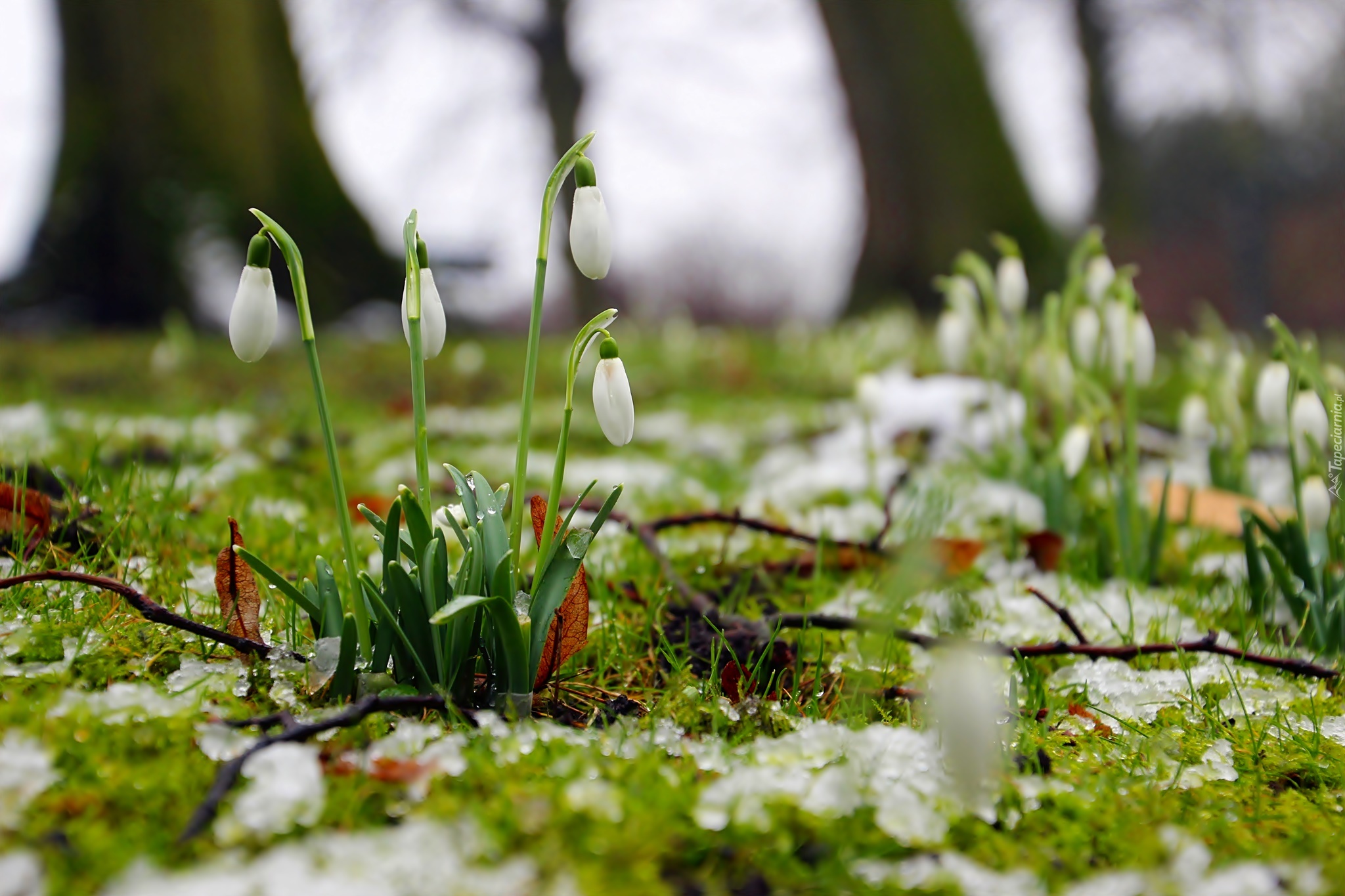 Edytor tapety: Wiosenne przebiśniegi w lesie
