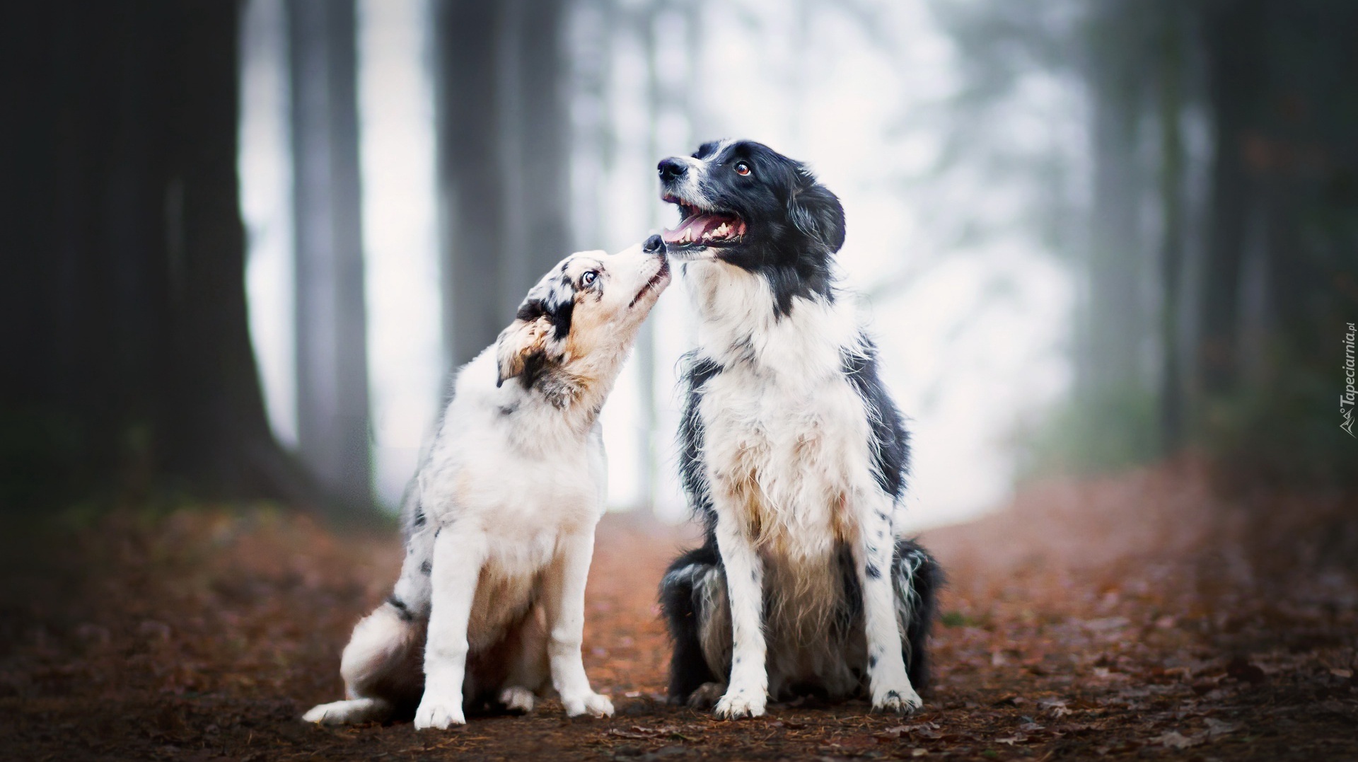 Edytor tapety: Border collie przysiadły na leśnej dróżce