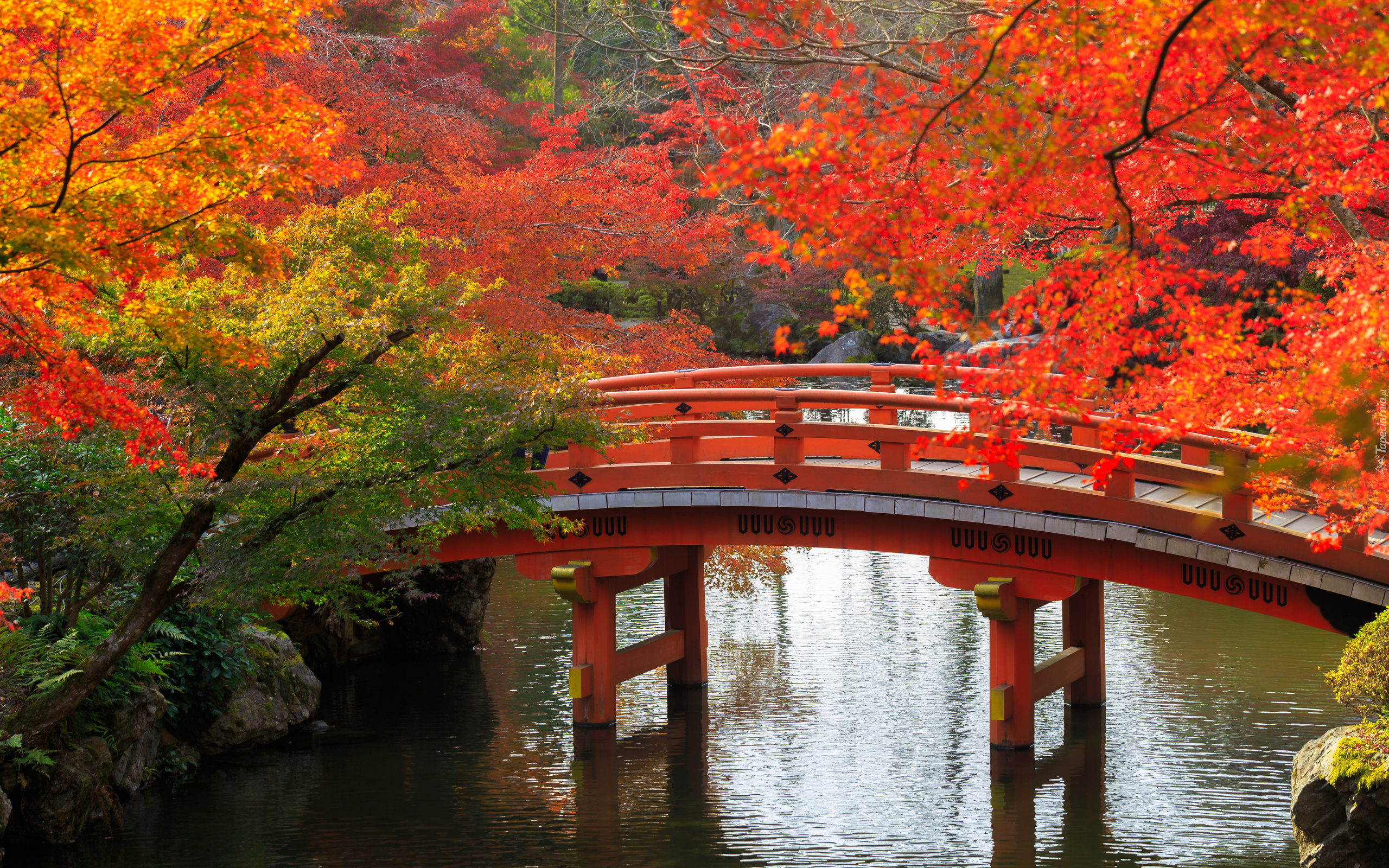 Edytor tapety: Drewniany most w japońskim parku wśród jesiennych drzew