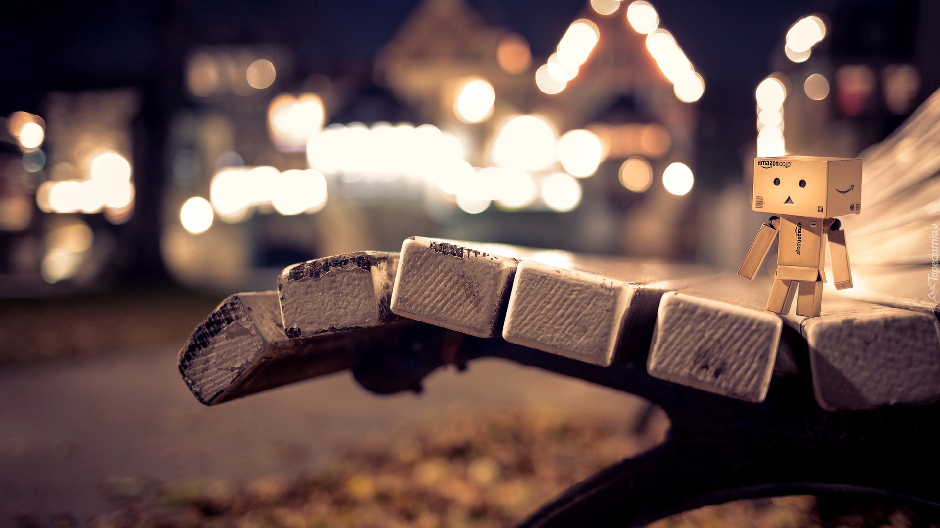 Edytor tapety: Kartonowy ludzik Danbo stoi na ławce