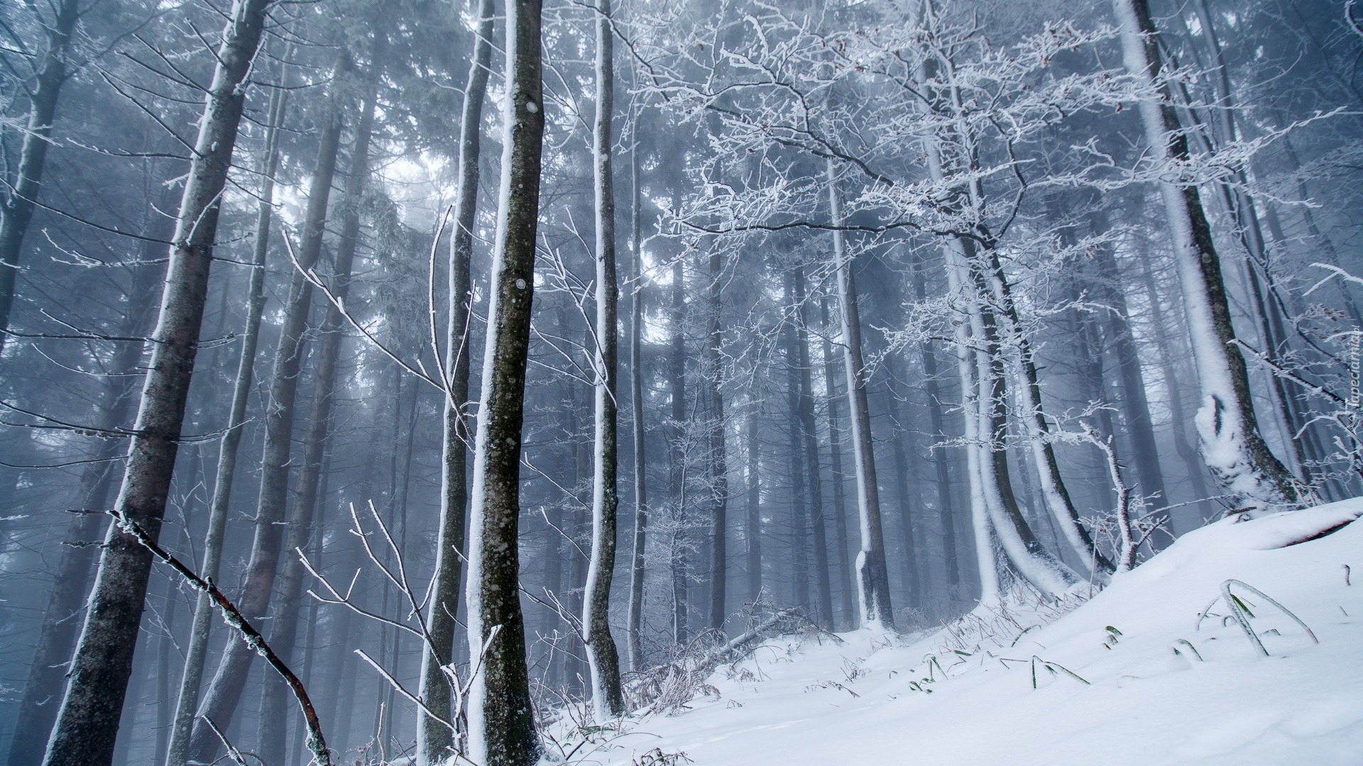 Edytor tapety: Mgła w zimowym lesie