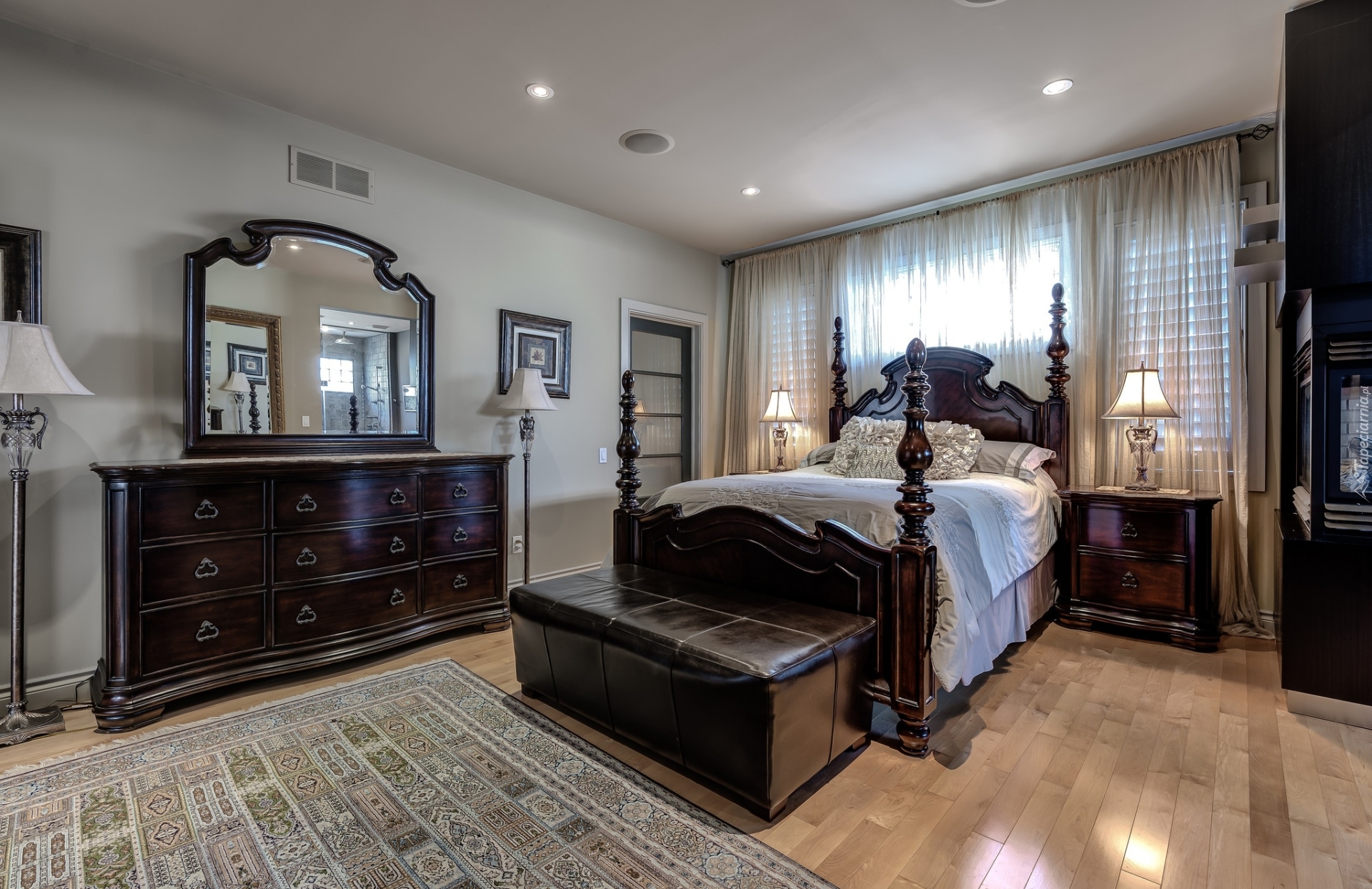 Edytor tapety: Sypialnia ze stylowymi drewnianymi meblami