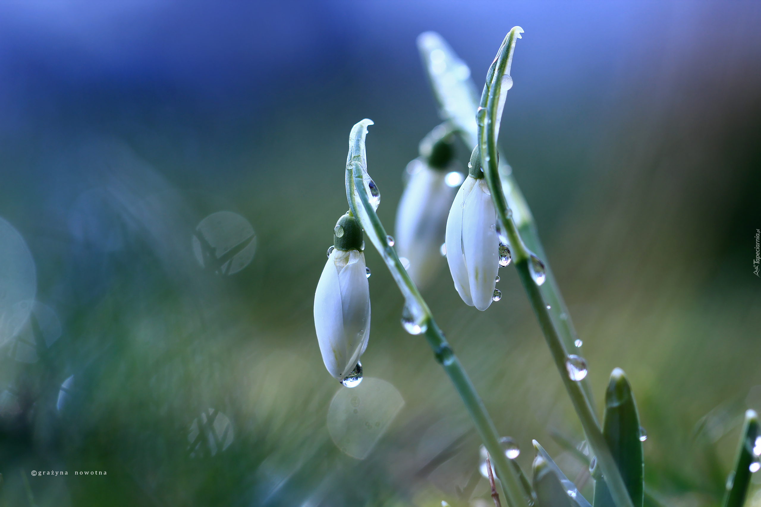 Edytor tapety: Białe przebiśniegi w kroplach deszczu