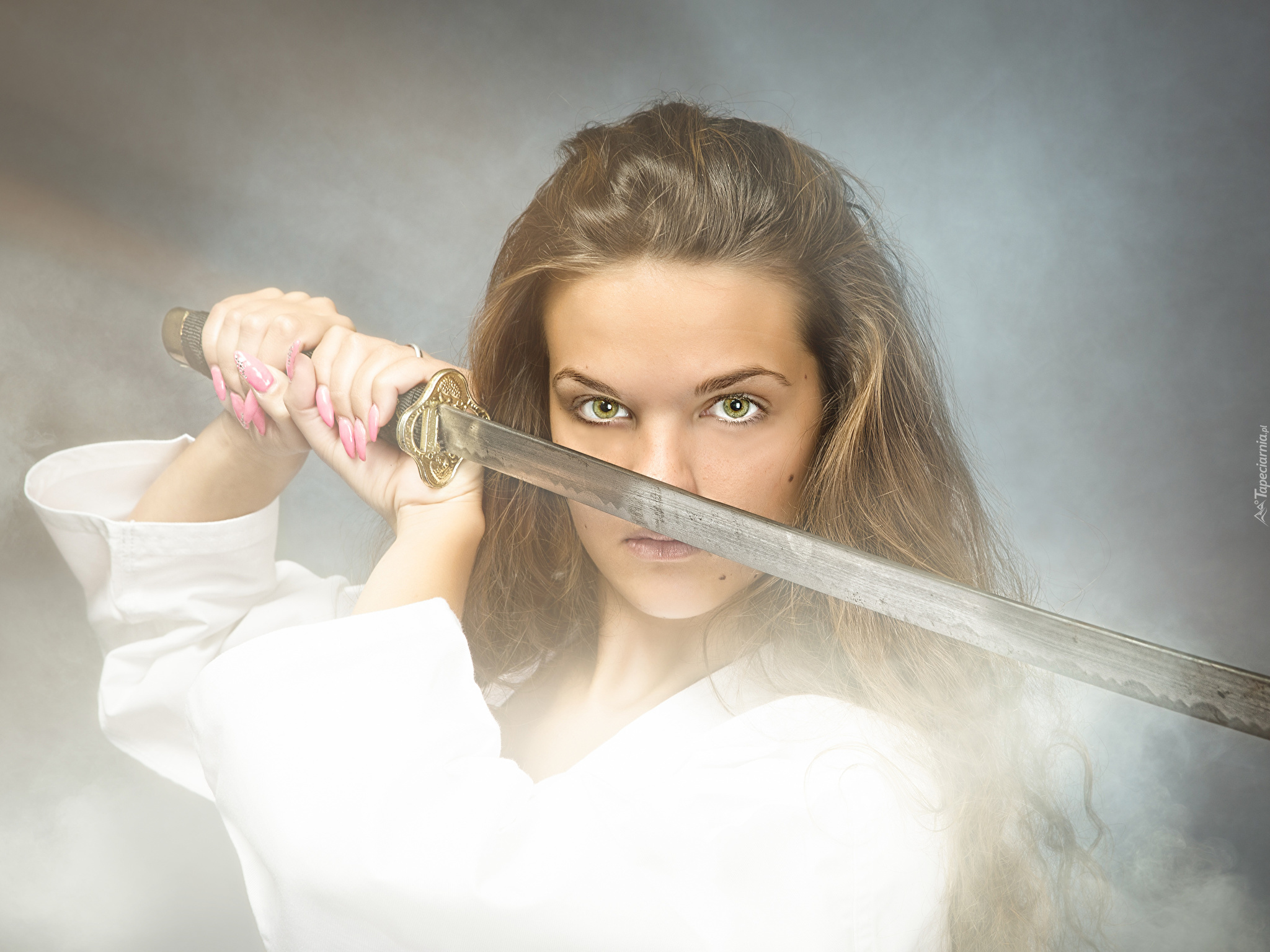 Edytor tapety: Piękna kobieta z mieczem japońskim katana
