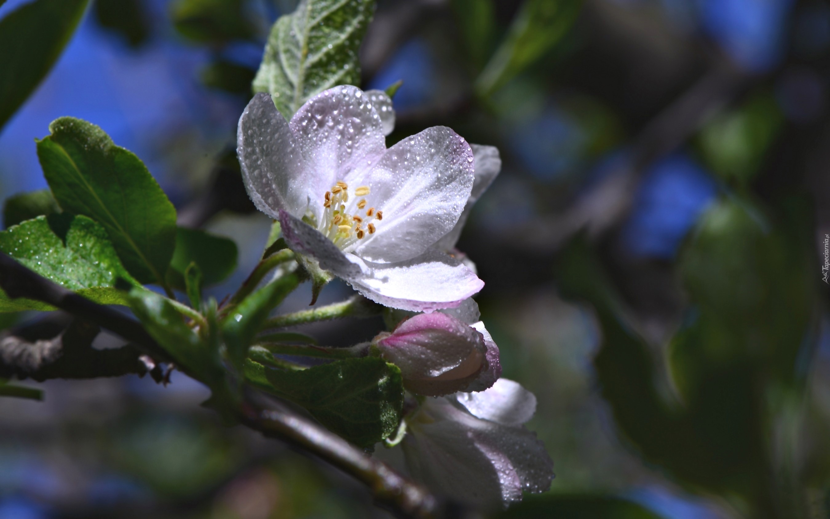 Edytor tapety: Krople deszczu na kwiatach wiśni