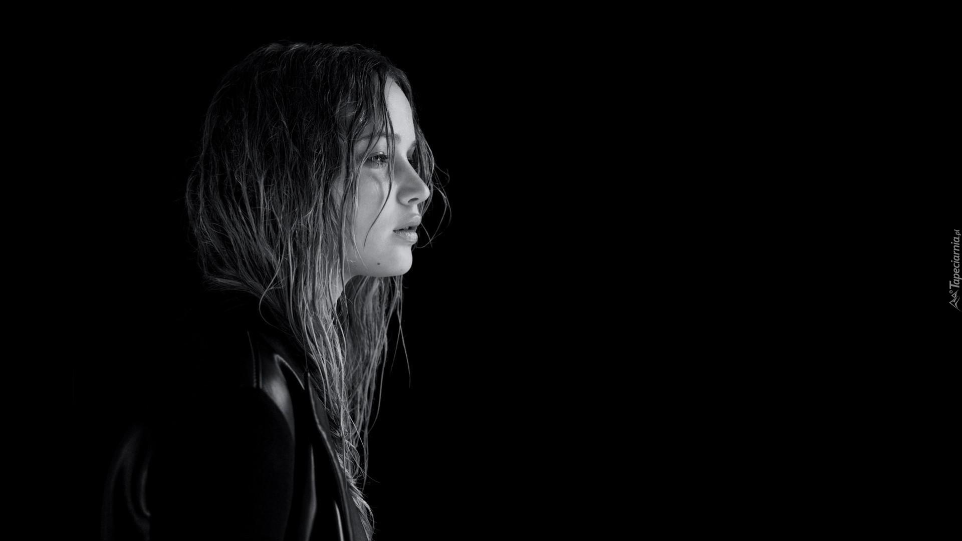 Edytor tapety: Czarno-biały profil amerykańskiej aktorki  Jennifer Lawrence