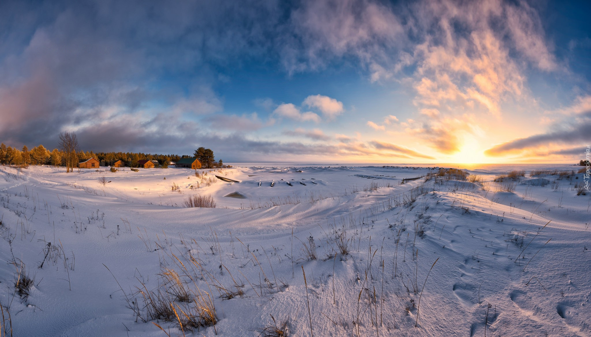 Edytor tapety: Domki na fińskiej wyspie Hailuoto zimą