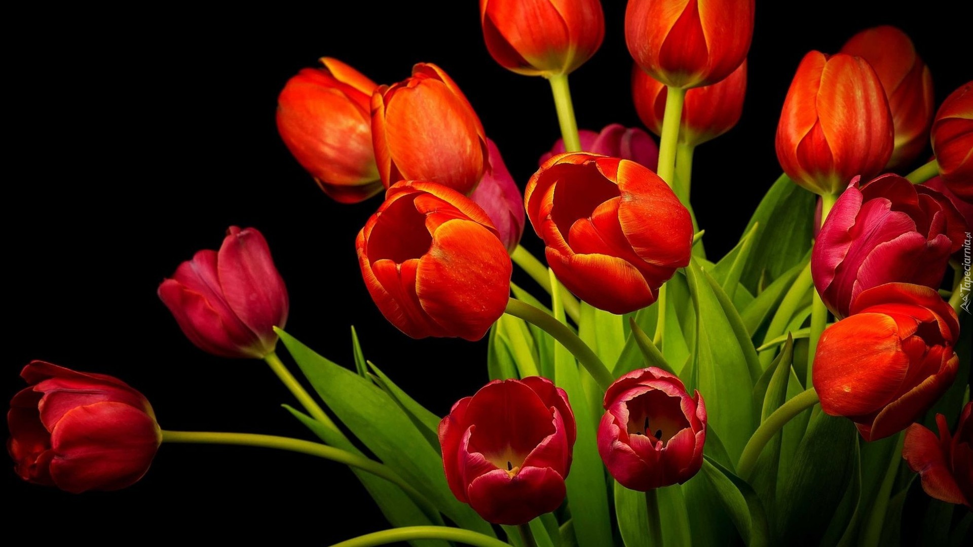 Edytor tapety: Czerwone tulipany na czarnym tle