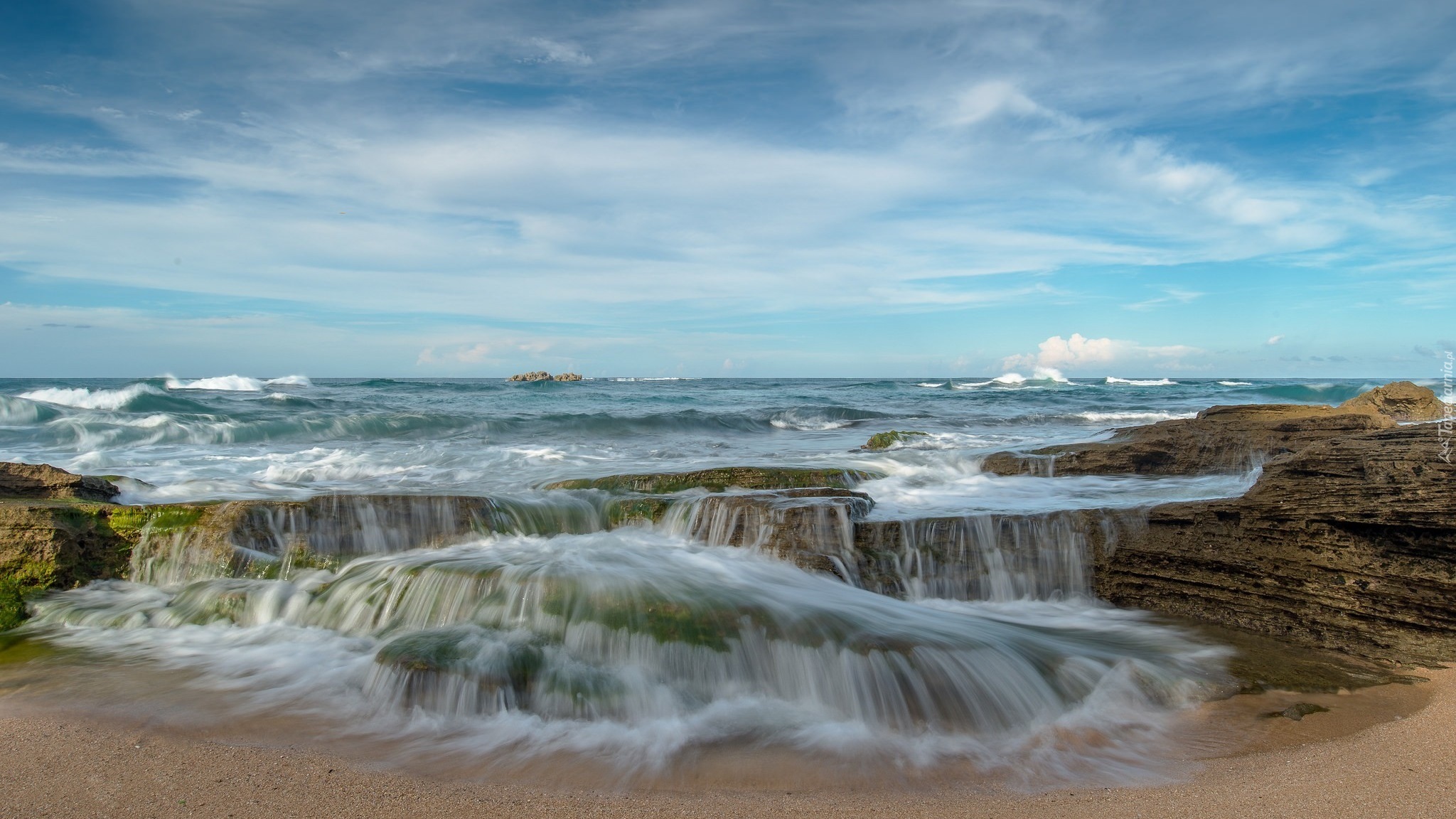 Edytor tapety: Morskie fale na skalnym brzegu