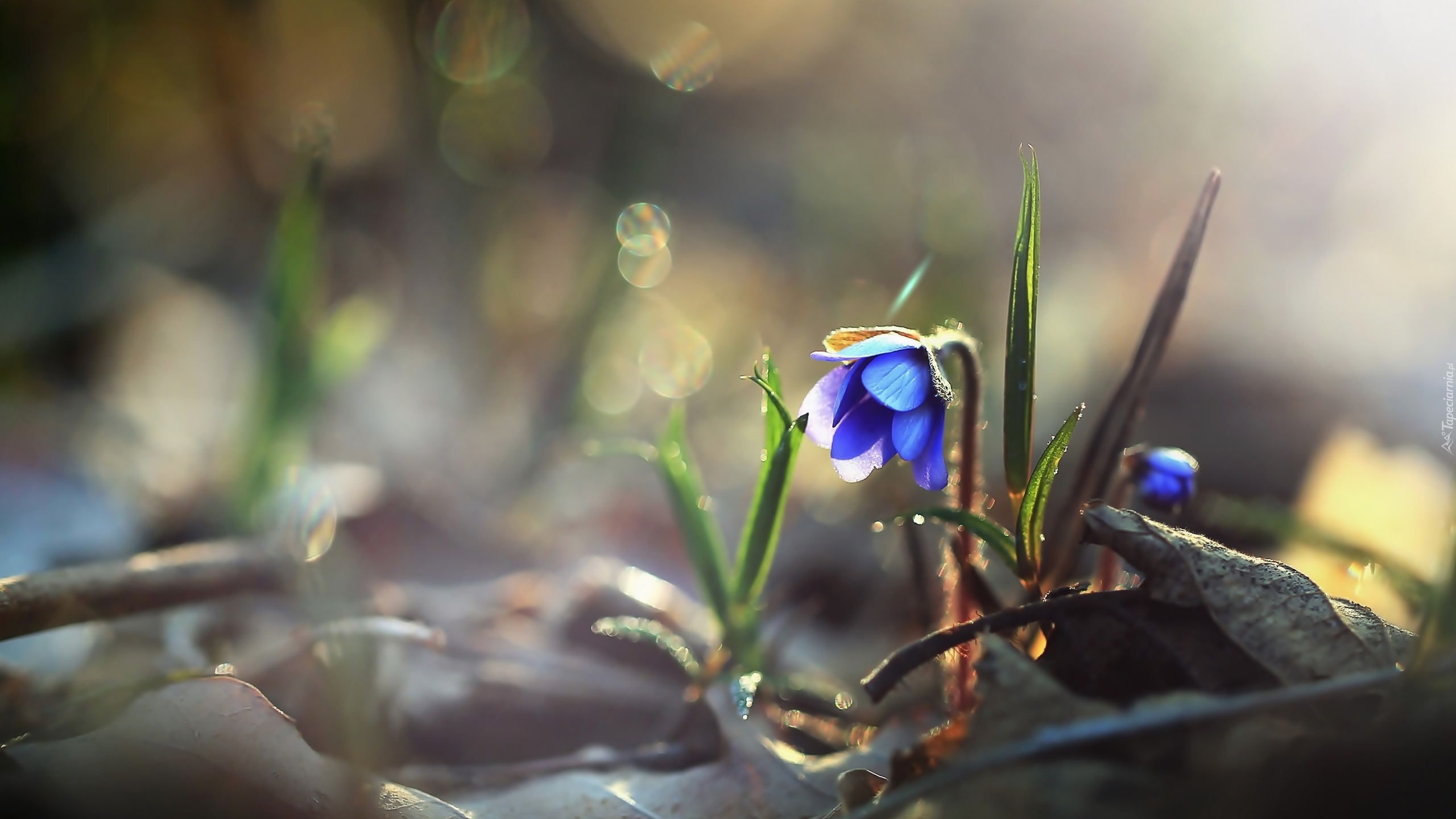 Edytor tapety: Wiosenne przylaszczki wyglądają spod zeschniętych liści