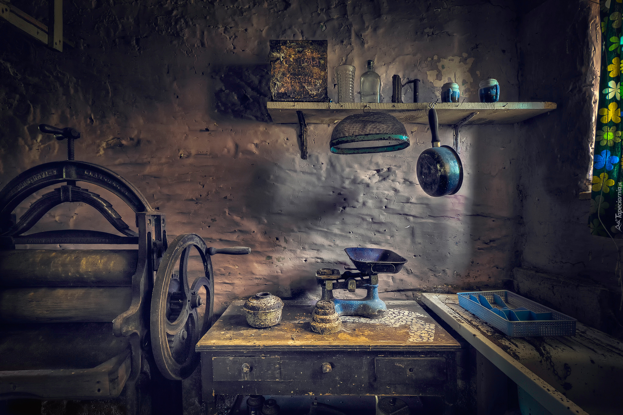 Edytor tapety: Magiel ręczny w starej zniszczonej kuchni