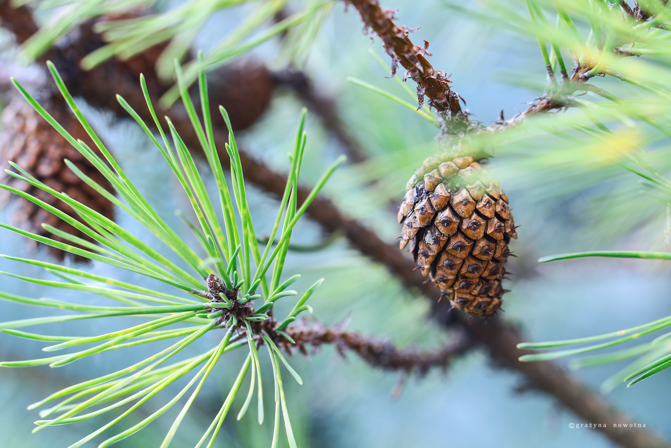 Edytor tapety: Gałązka sosny z szyszkami