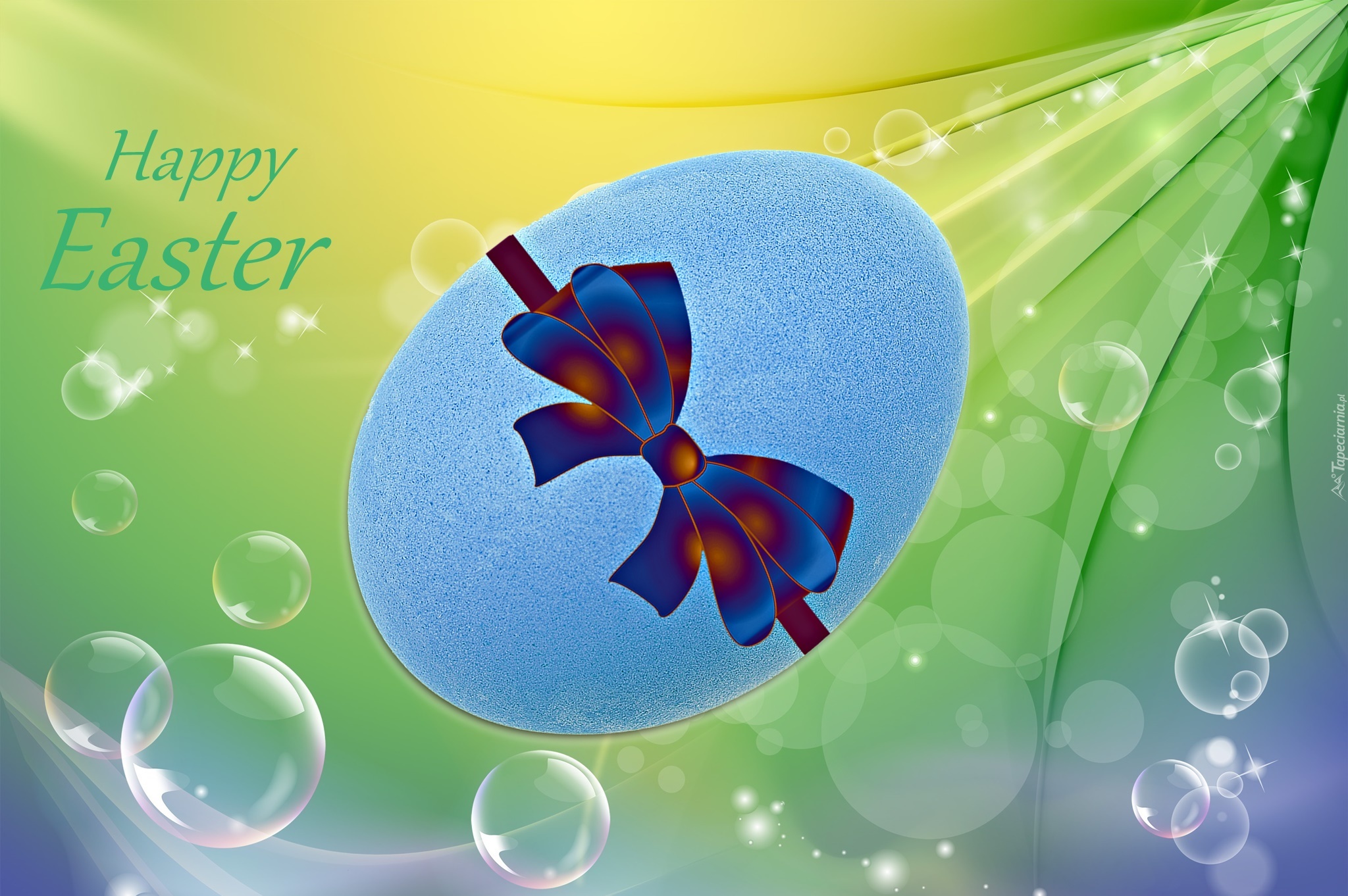 Edytor tapety: Graficzna pisanka z kokardką i życzenia wielkanocne
