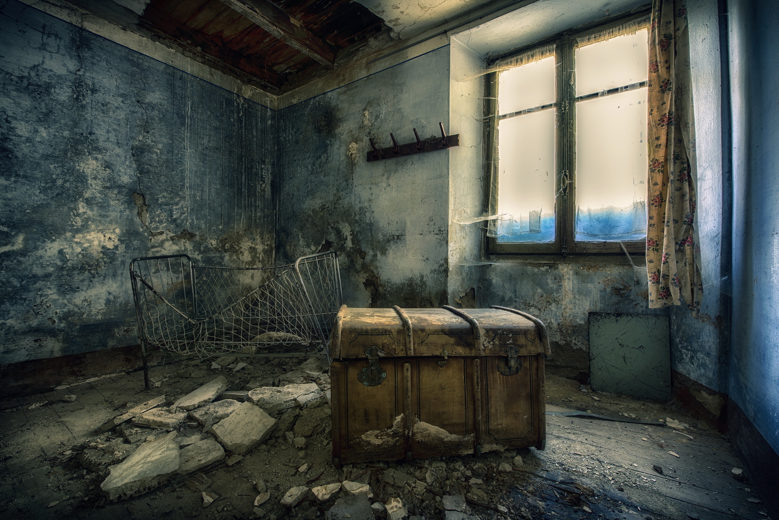 Edytor tapety: Skrzynia na środku zniszczonego pokoju