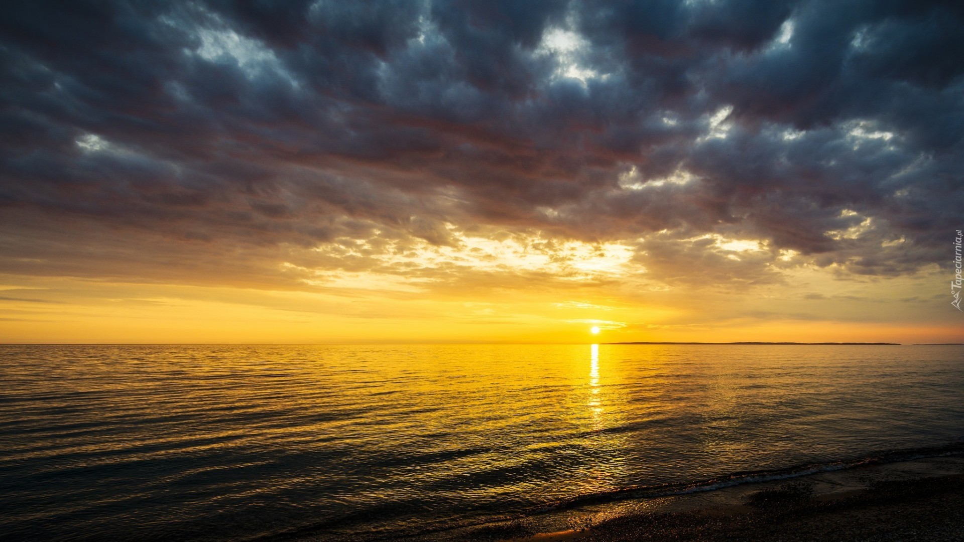 Edytor tapety: Ciemne chmury nad morzem o zachodzie słońca