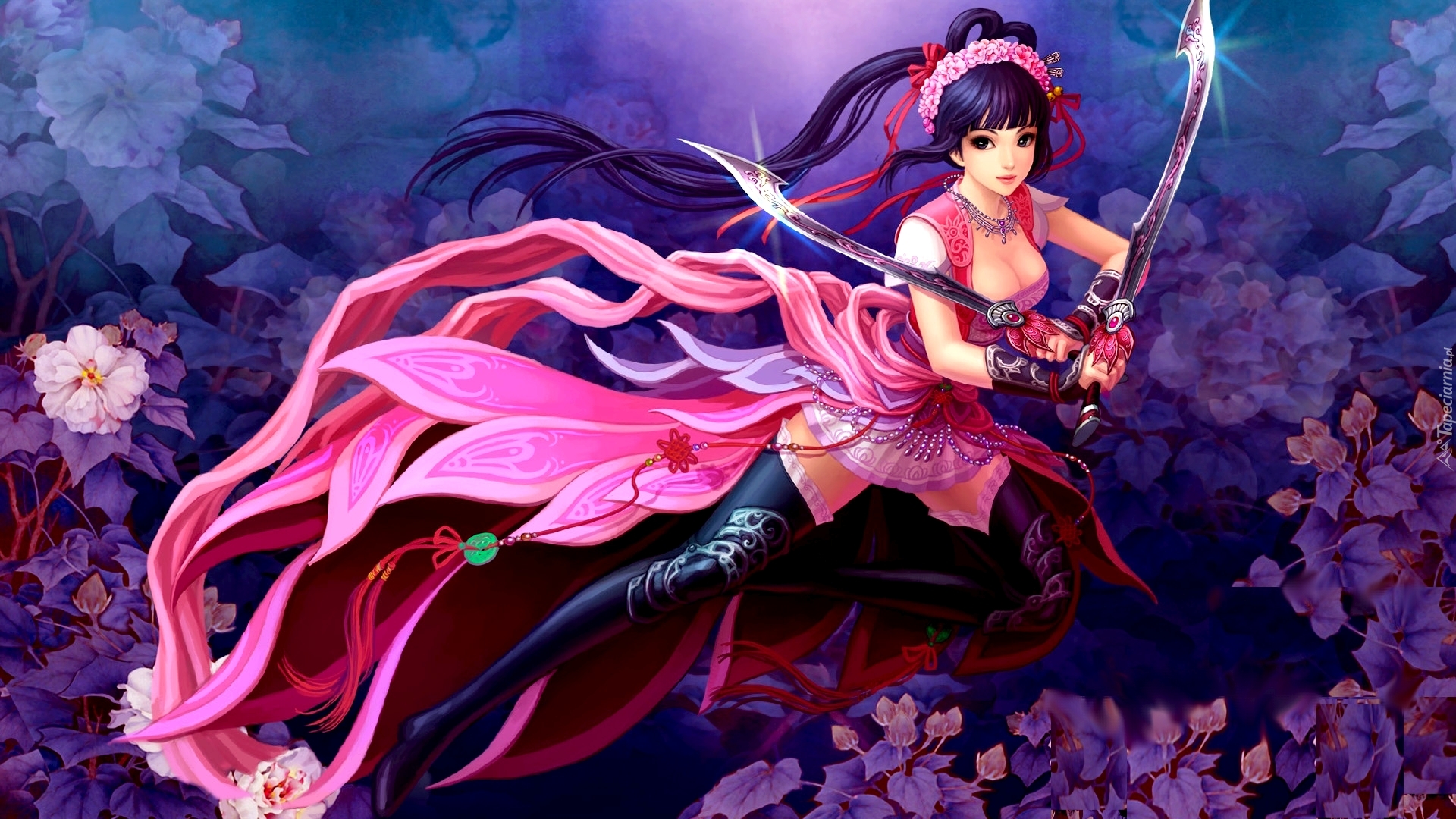 Edytor tapety: Kobieta wojownik z mieczem w grafice fantasy