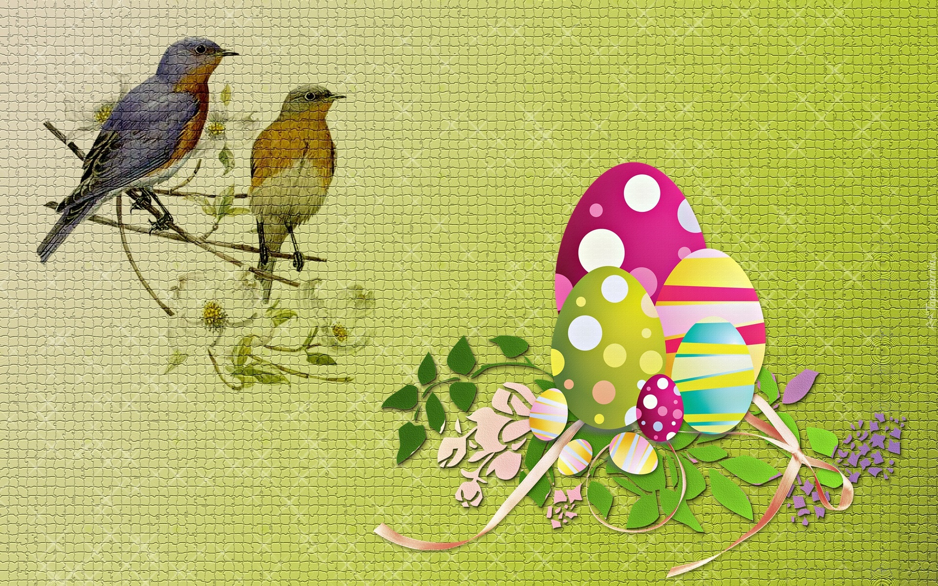 Edytor tapety: Wielkanocne pisanki z ptaszkami na gałązce