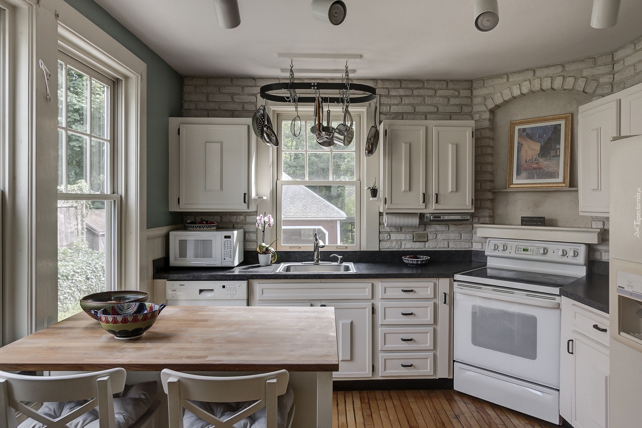 Edytor tapety: Wnętrze kuchni z białymi meblami