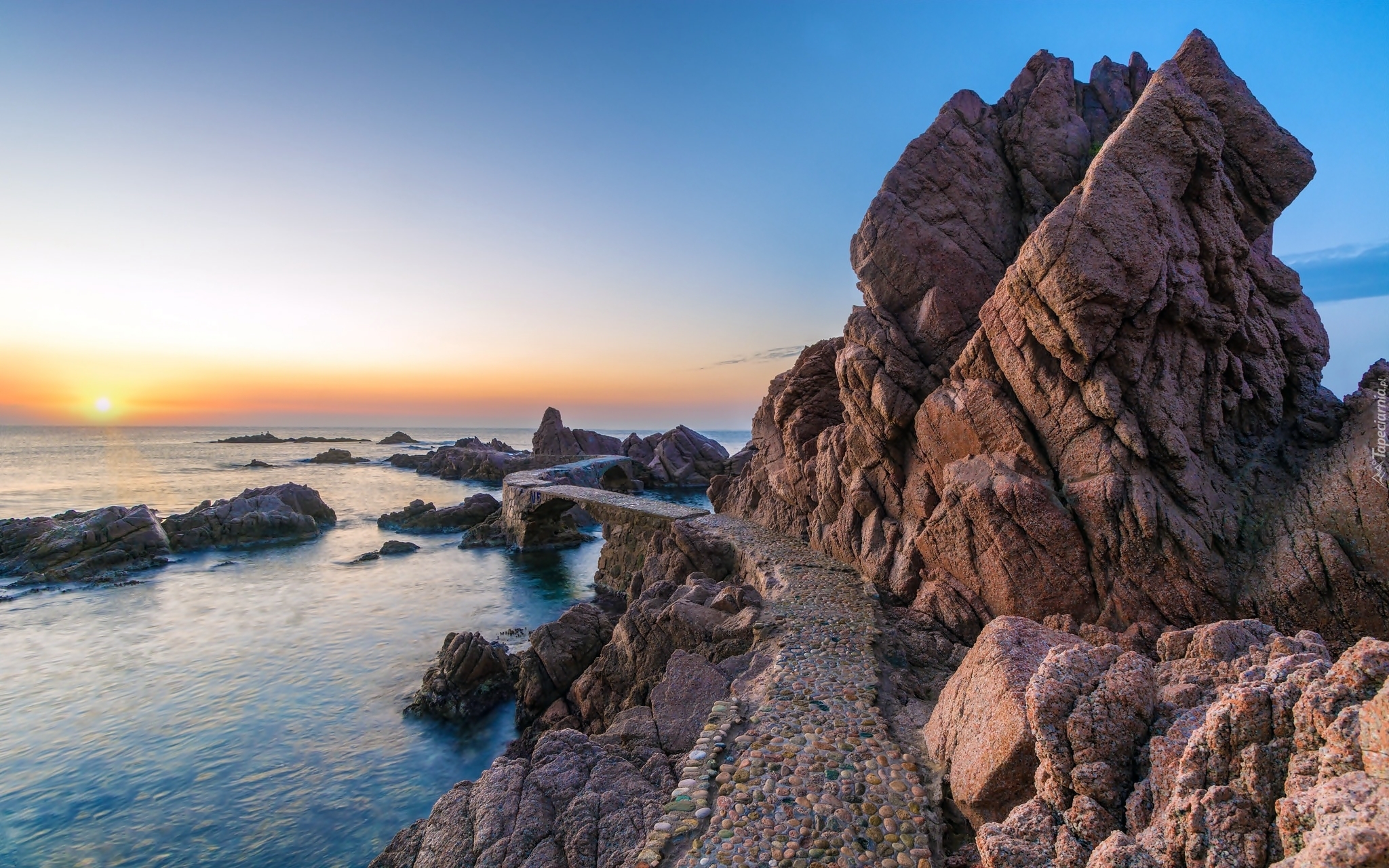 Edytor tapety: Kamienny murek i skały na wybrzeżu hiszpańskiej Katalonii