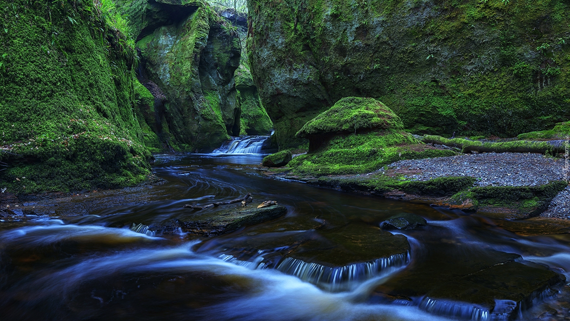 Edytor tapety: Szkocki wąwóz Finnich Glen z rzeczką Carnock Burn