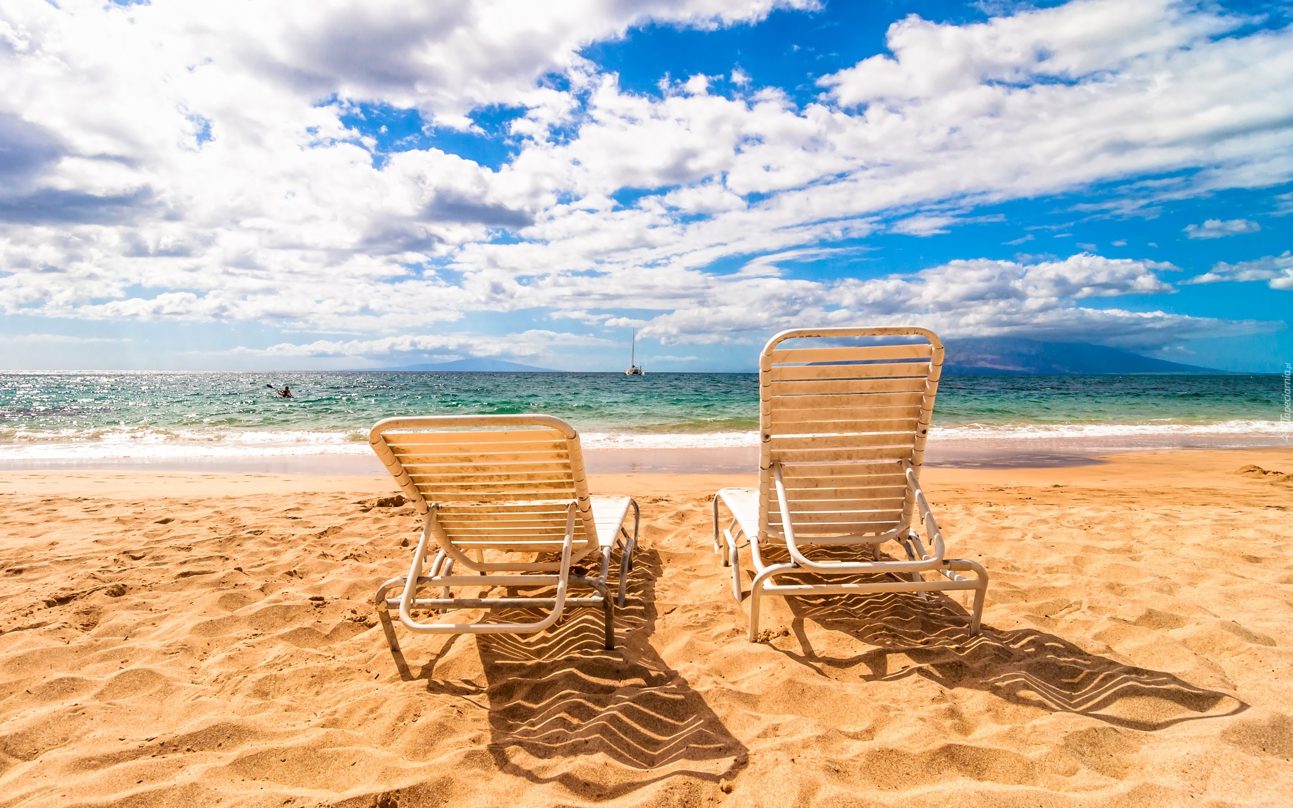 Edytor tapety: Dwa leżaki na morskiej plaży