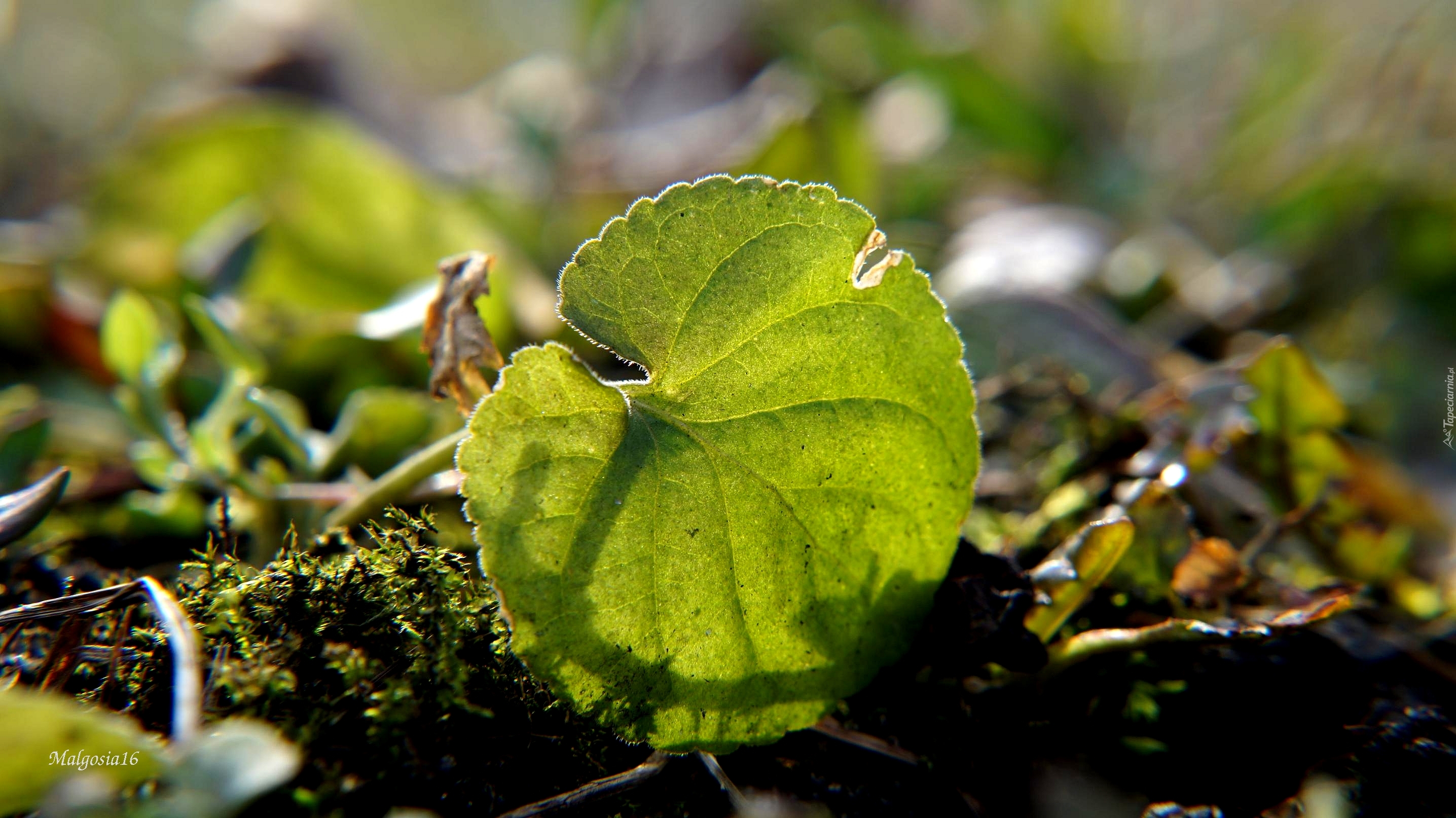 Edytor tapety: Zielony liść na mchu w zbliżeniu
