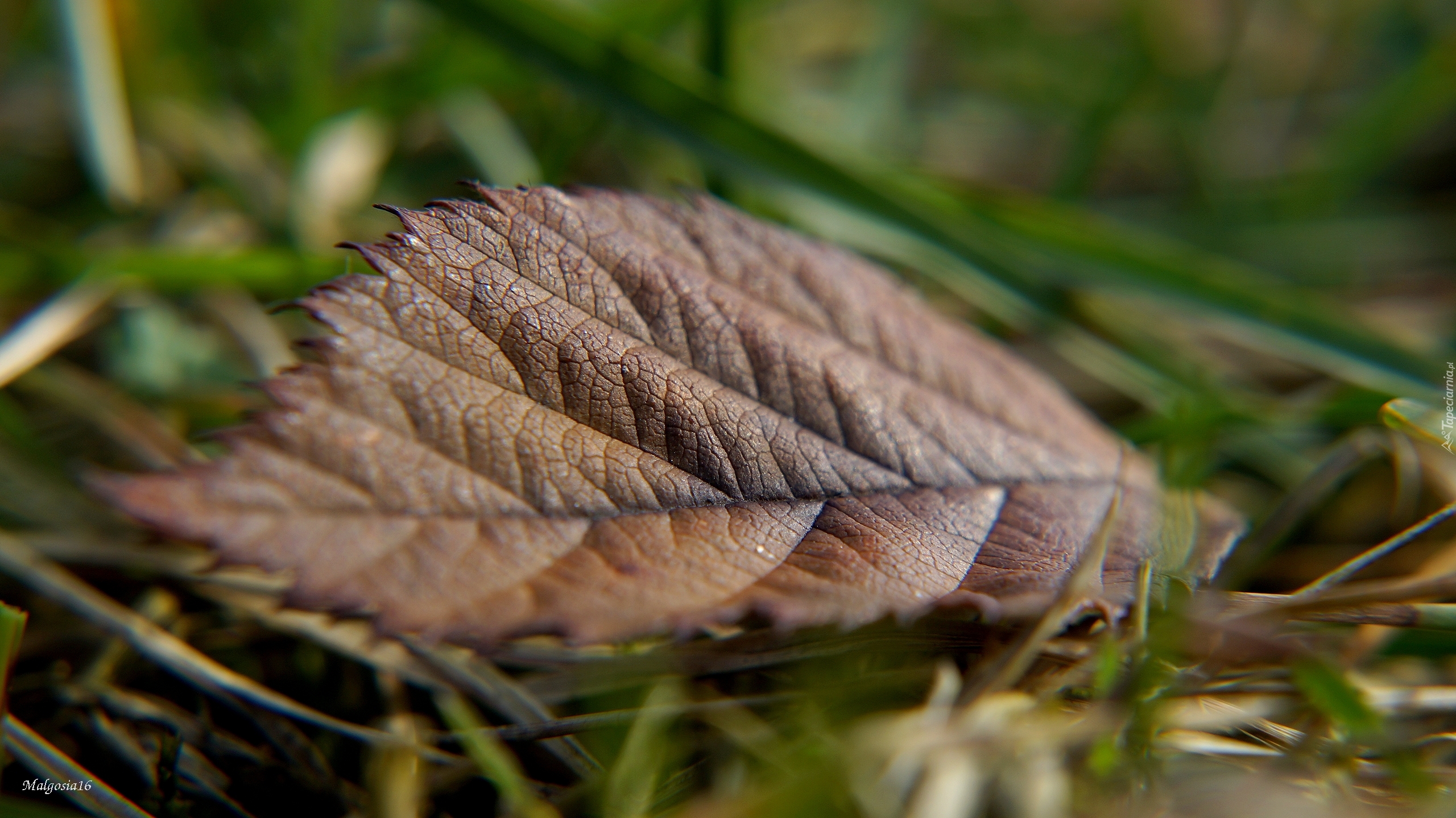 Edytor tapety: Uschnięty liść w trawie