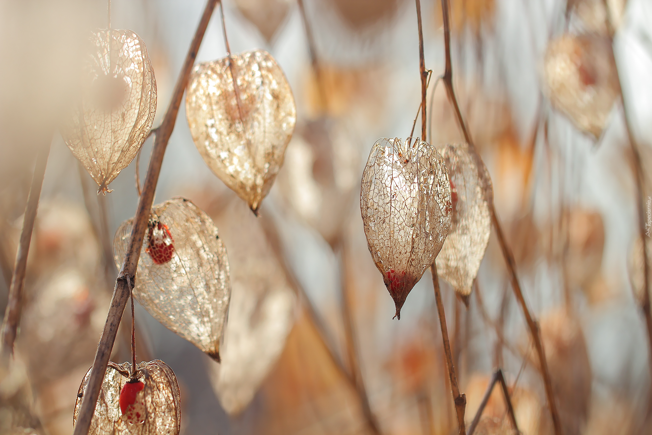 Edytor tapety: Uschnięta miechunka rozdęta na gałązkach
