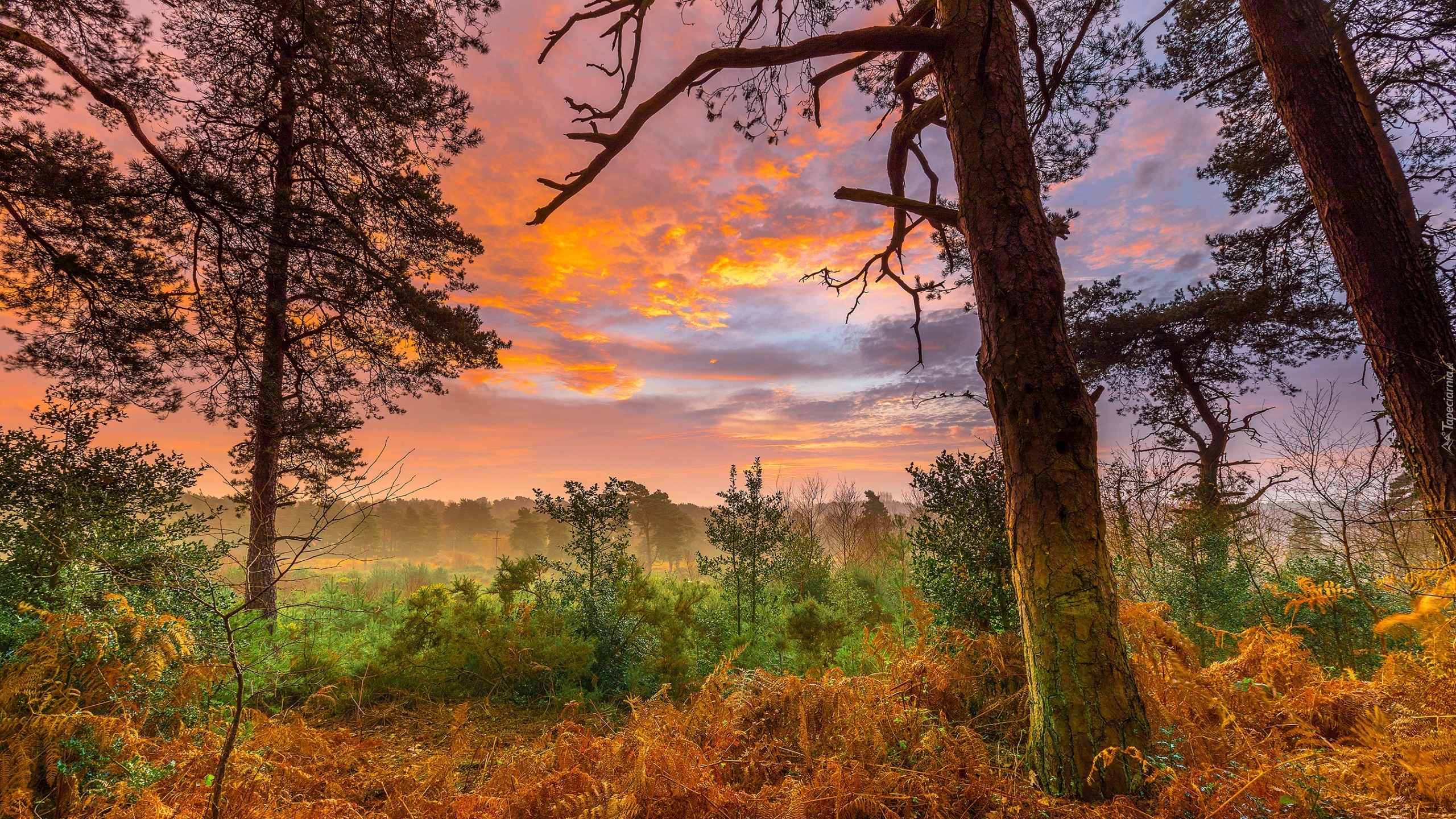 Edytor tapety: Drzewa i krzewy z widokiem na zachmurzone niebo