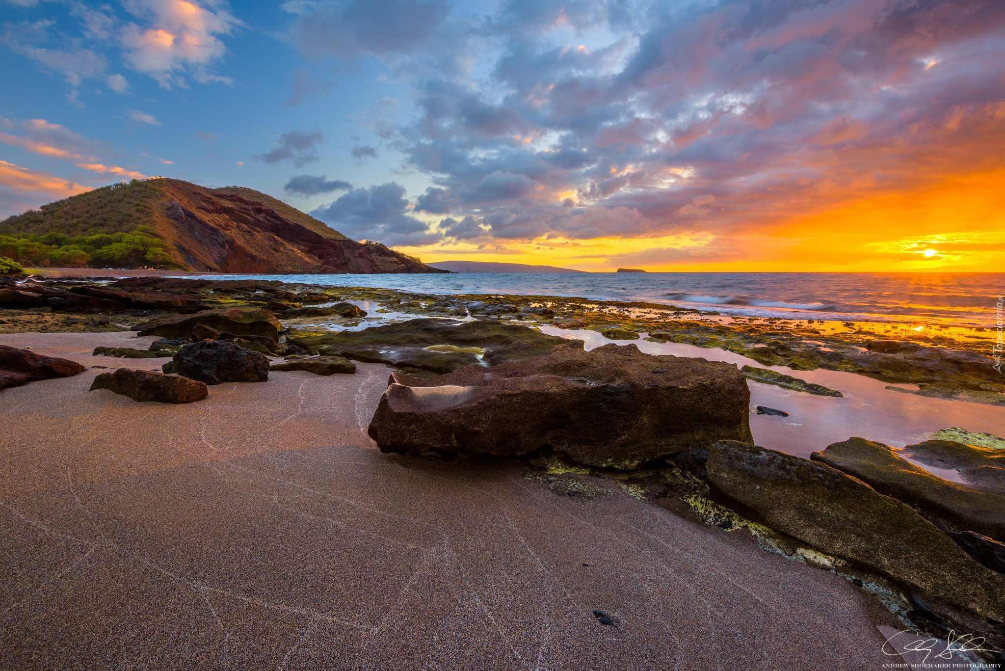 Edytor tapety: Wybrzeże wyspy Maui o zachodzie słońca