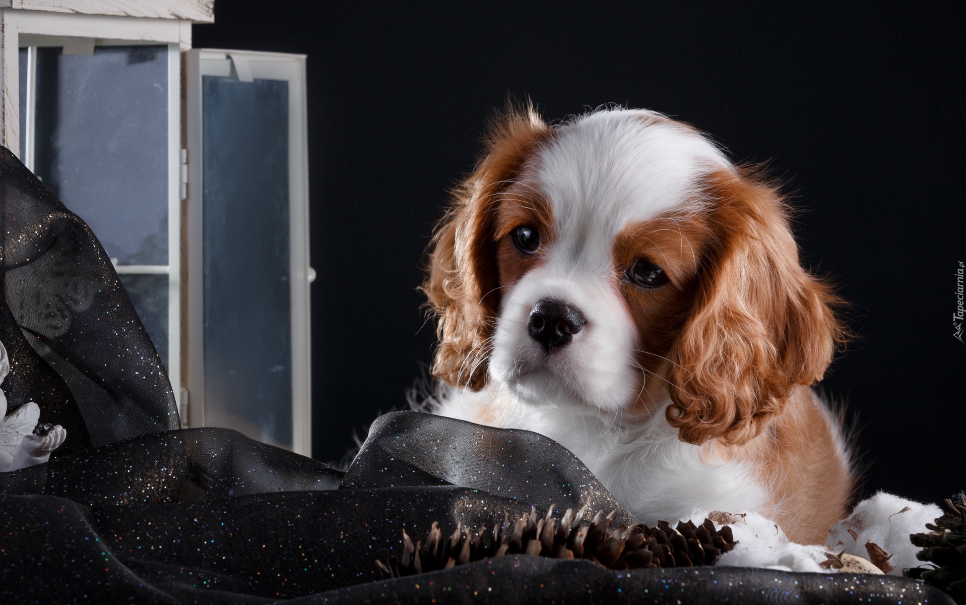 Edytor tapety: Zamyślony cavalier king charles spaniel przy oknie