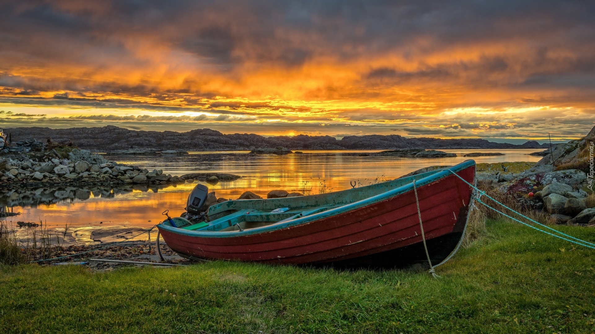 Edytor tapety: Łódka na brzegu Morza Północnego w okręgu Rogaland