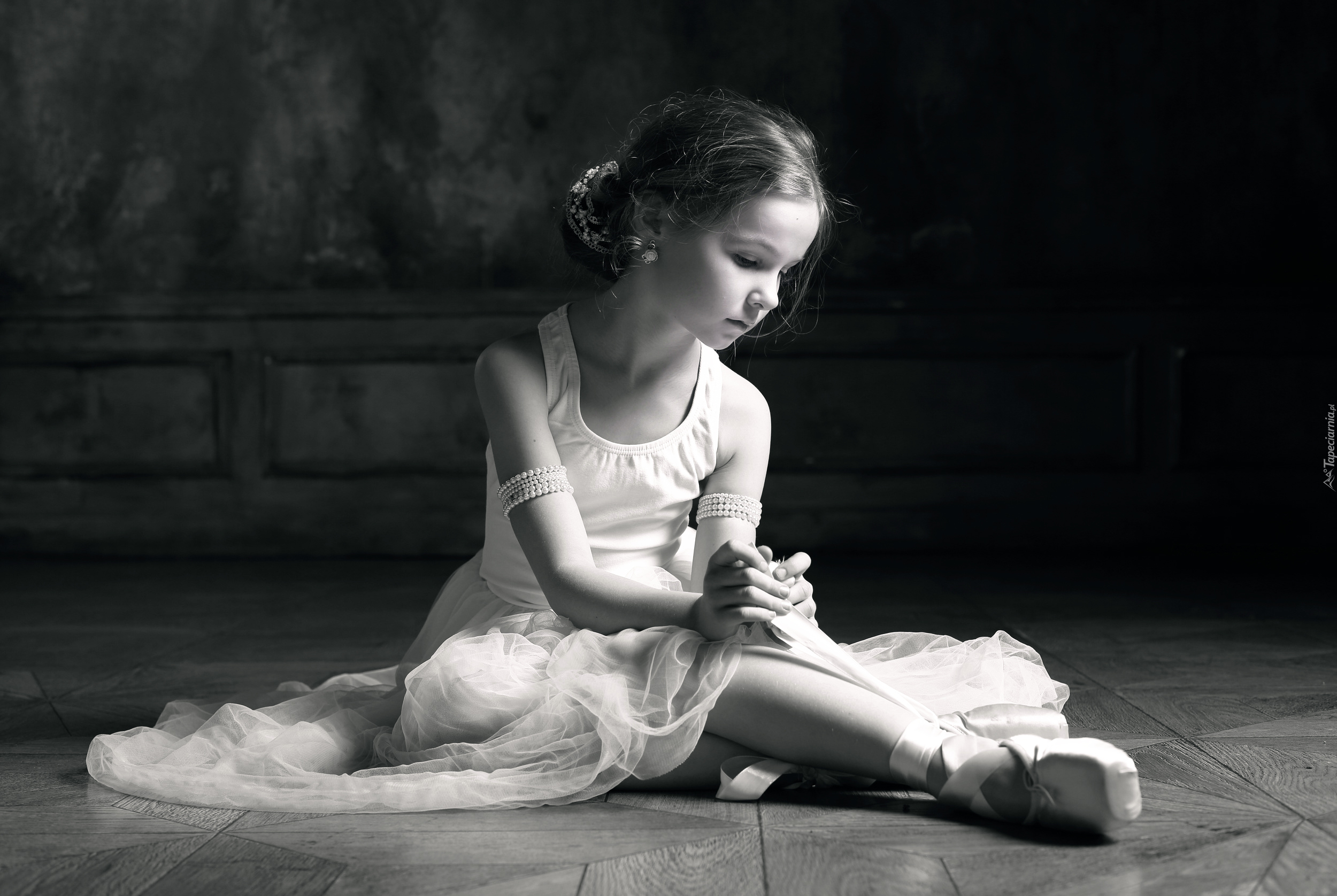 Edytor tapety: Czarno-białe zdjęcie małej baletnicy