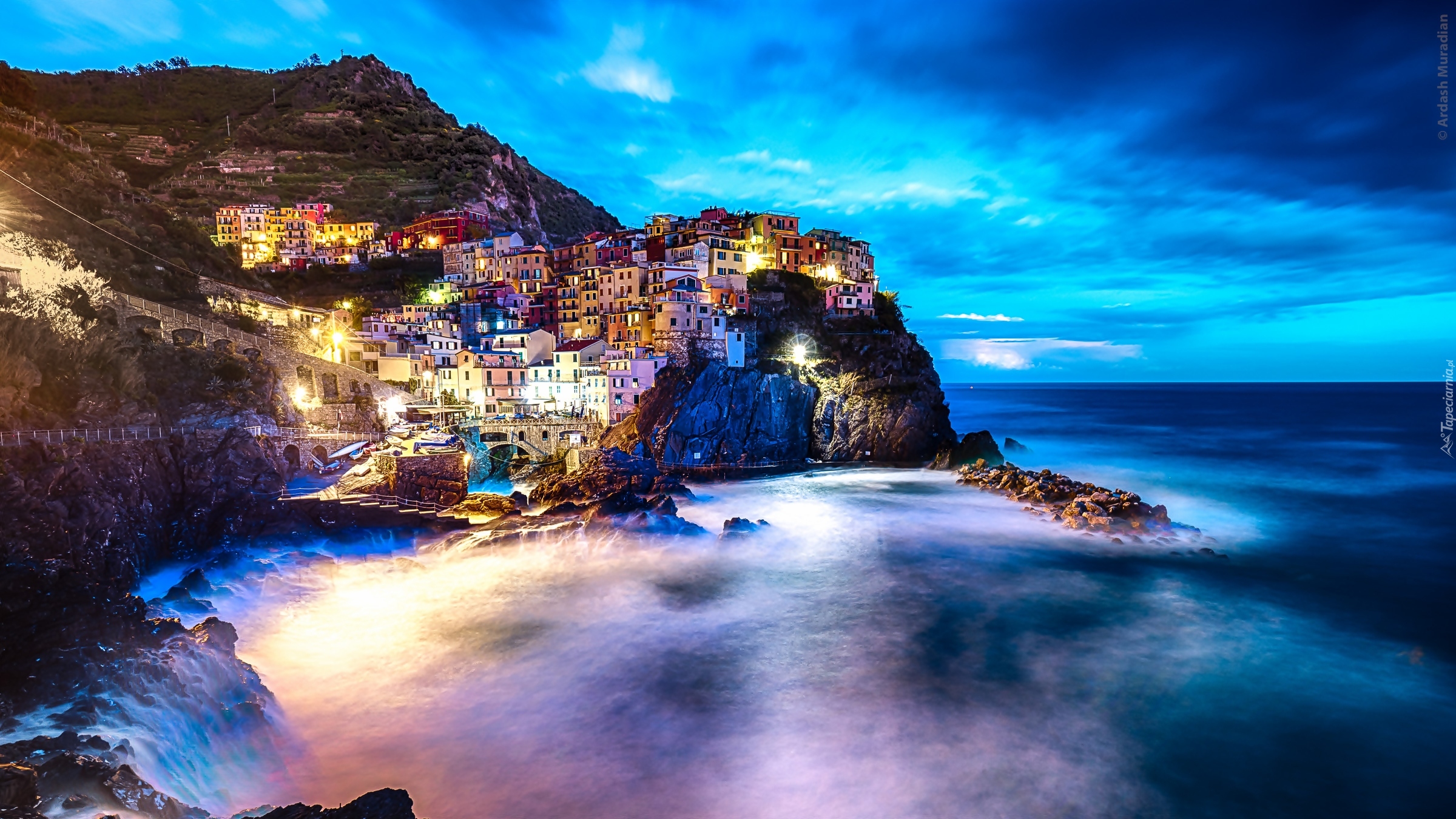 Edytor tapety: Włoska Manarola z domami na skałach