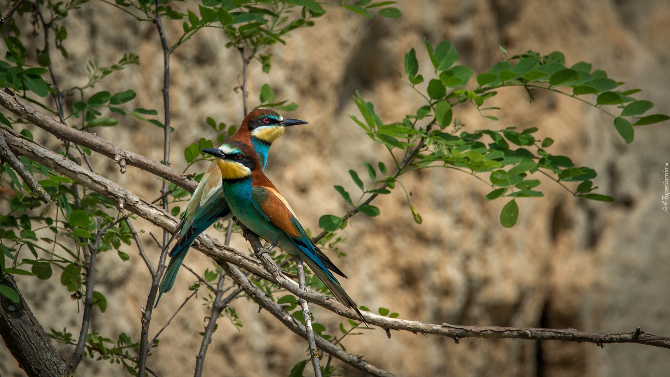 Edytor tapety: Dwie żołny na gałązce drzewa