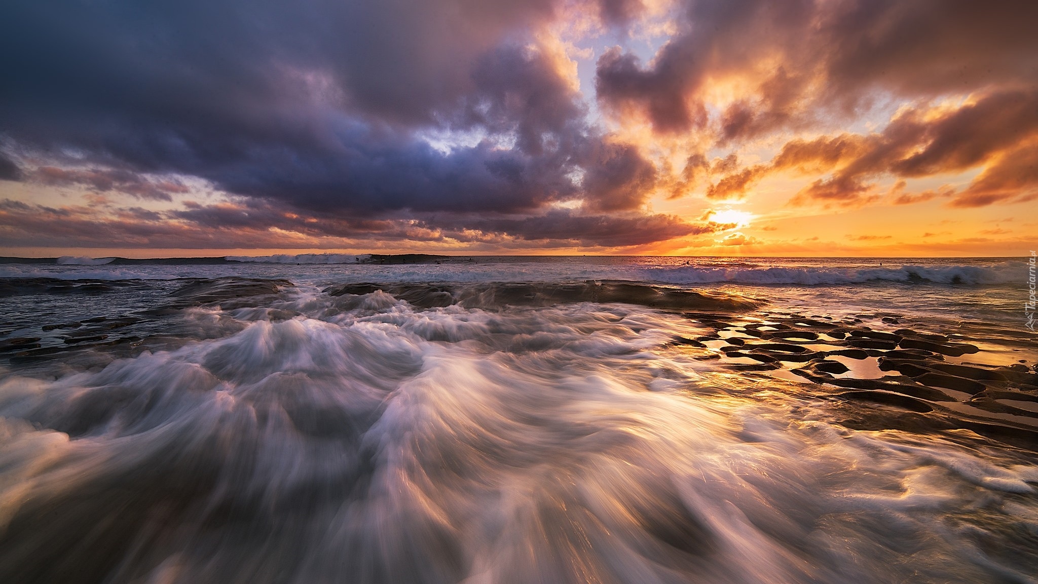 Edytor tapety: Zachodzące słońce nad wzburzonym morzem