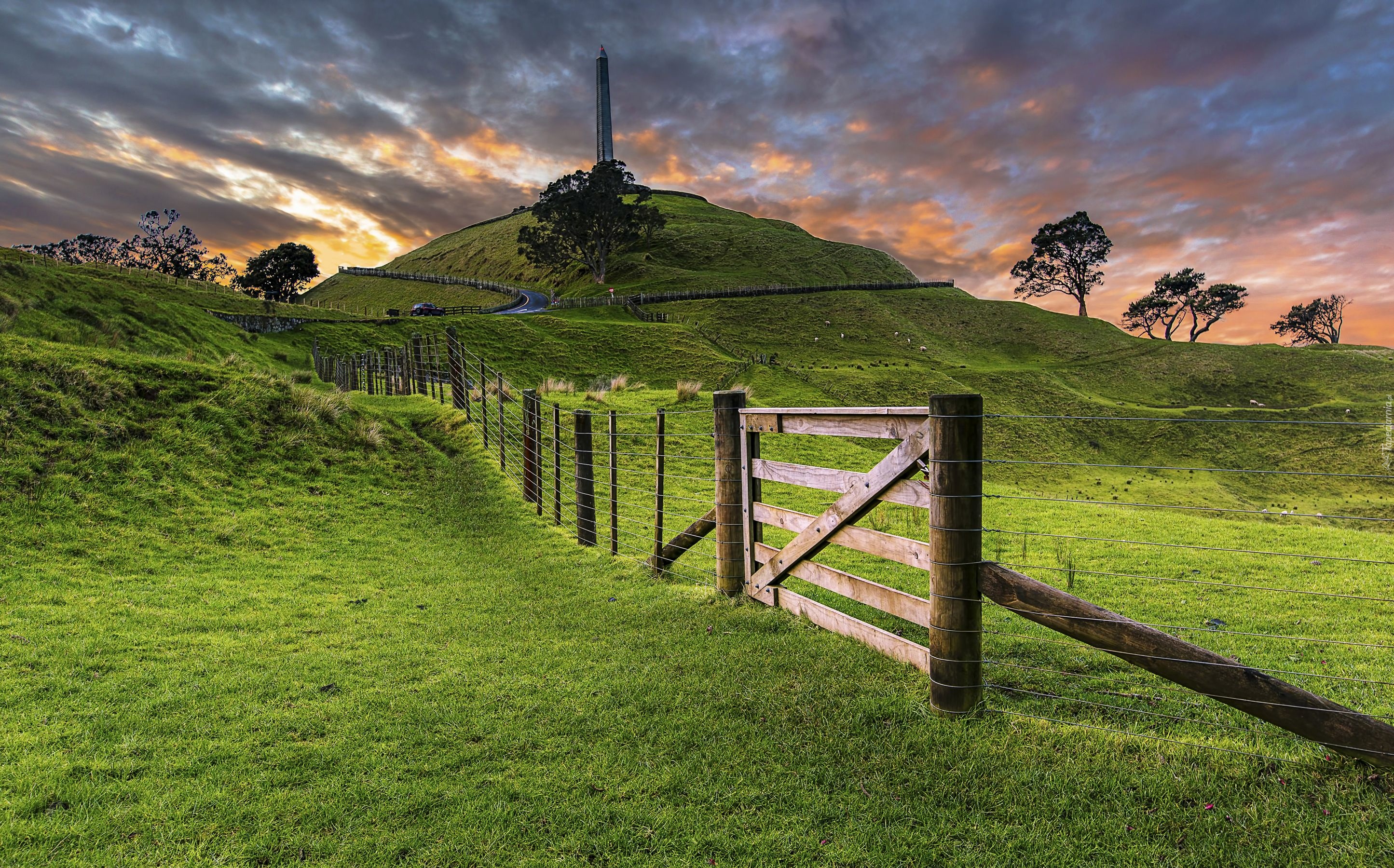 Edytor tapety: Ogrodzone łąki w pobliżu nowozelandzkiego miasta Auckland