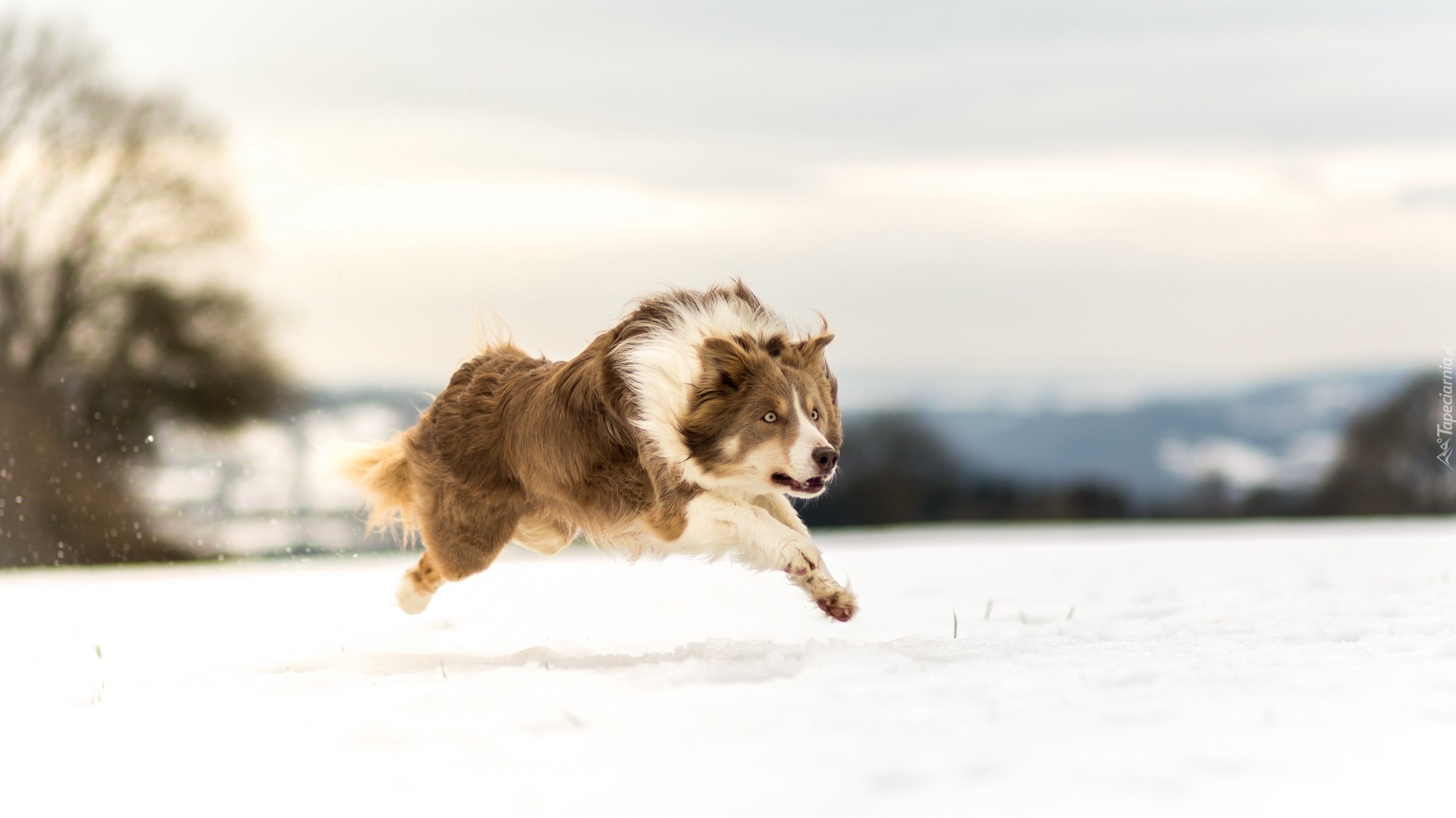Edytor tapety: Border collie biegnie po śniegu