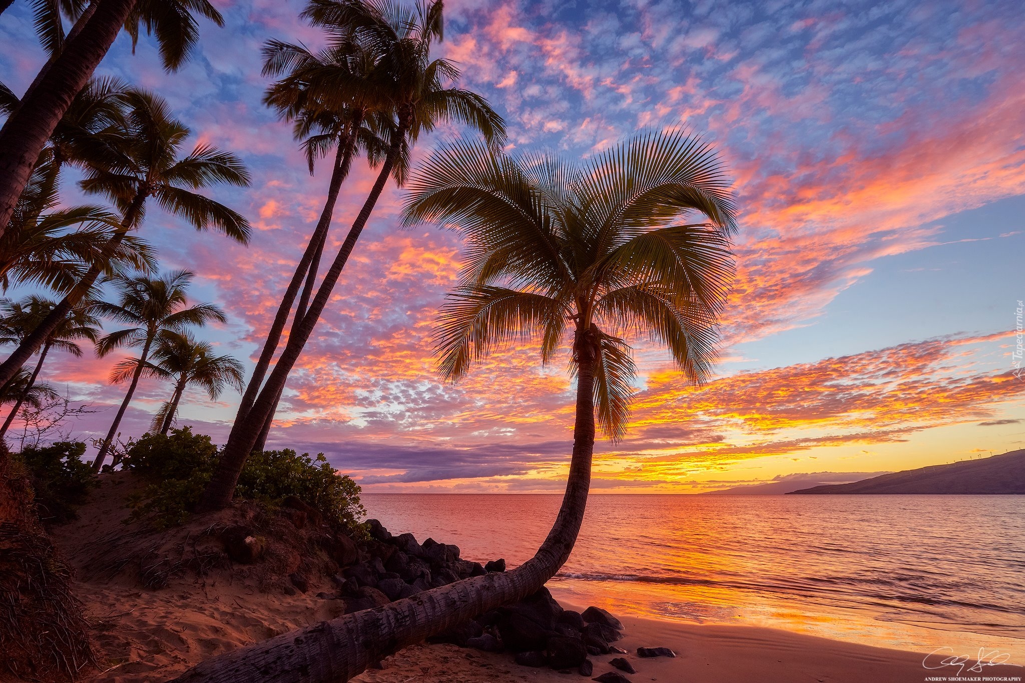 Edytor tapety: Palmy w zachodzącym słońcu na Maui