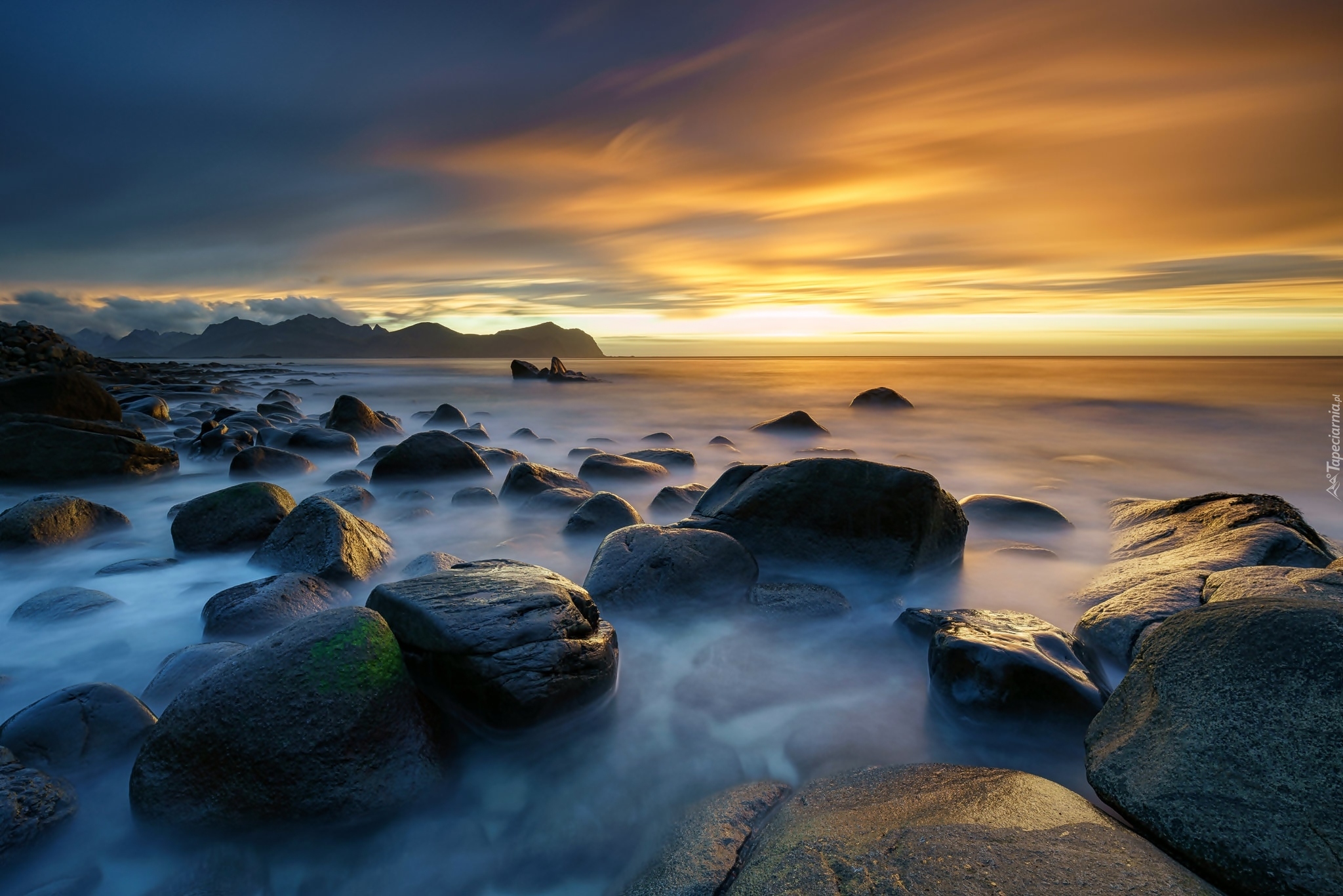 Edytor tapety: Słońce zachodzi nad norweskimi Lofotami